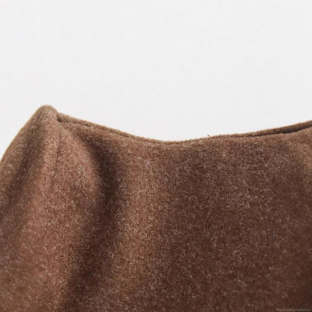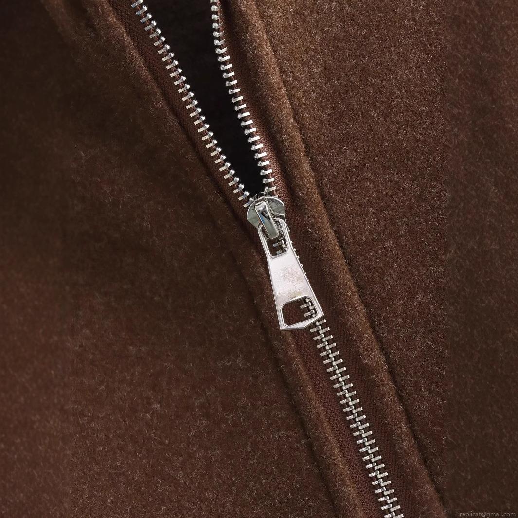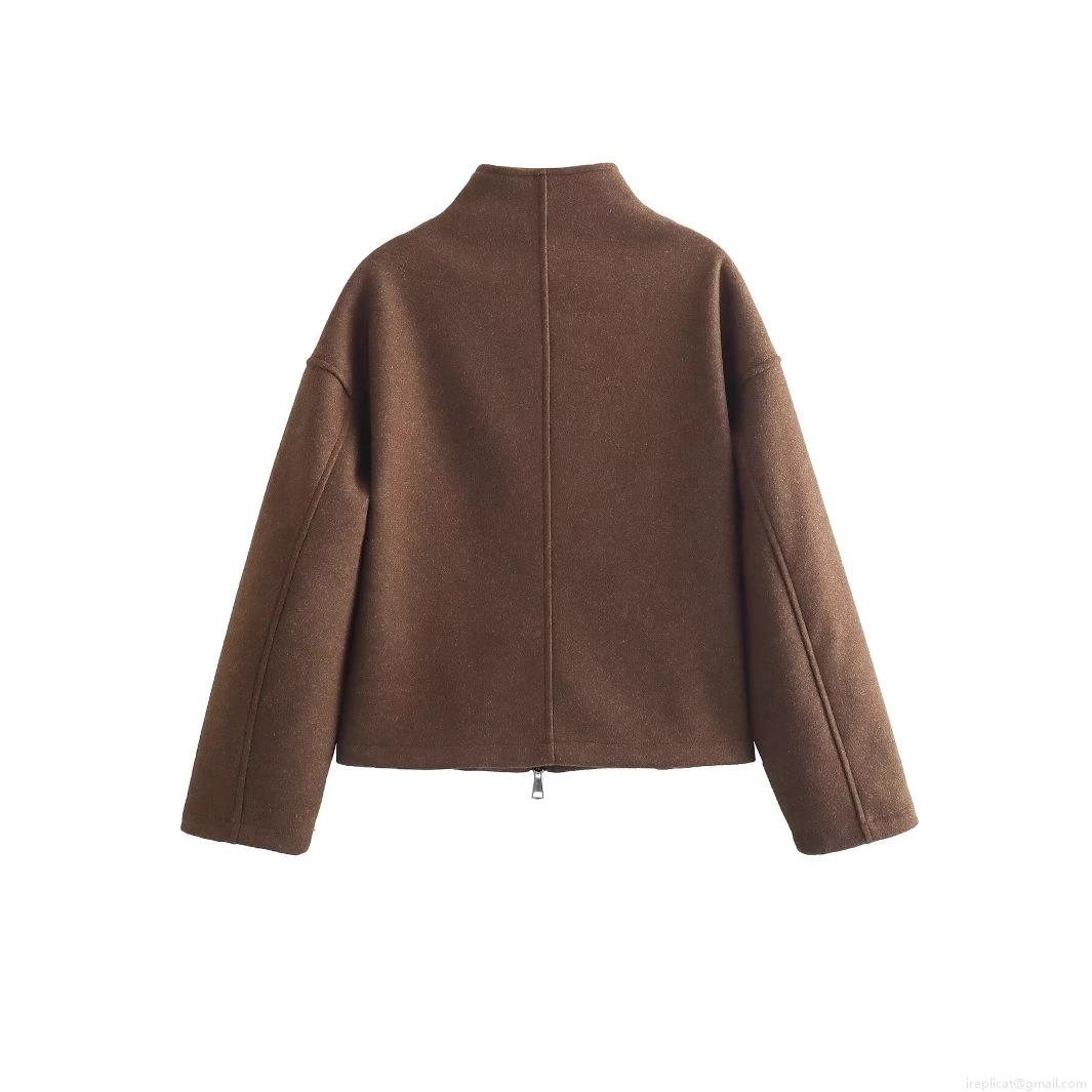 Women's Solid Coffee Brown Woolen-Like Jacket Stand Collar Double Zipper Casual Loose Fit Long Sleeve Outerwear Coat For Women Spring Autumn