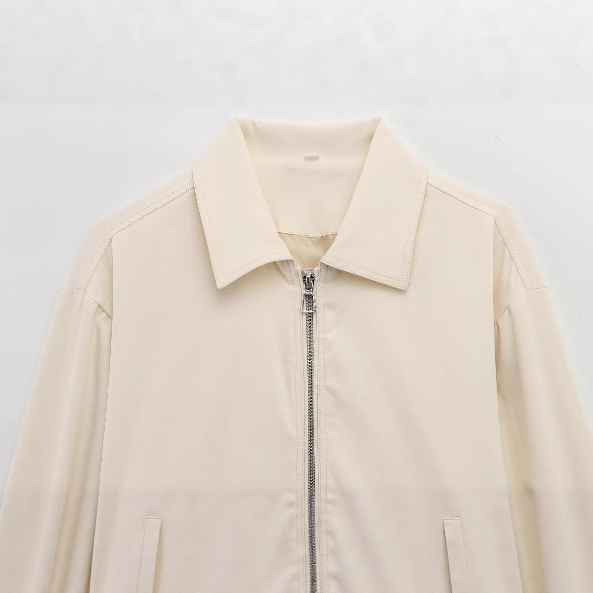 Women's Solid Color Bomber Jacket Polyester Woven Lapel Zipper Long Sleeve Lightweight Coat Casual Modern Minimalist Outerwear For Spring Autumn Women