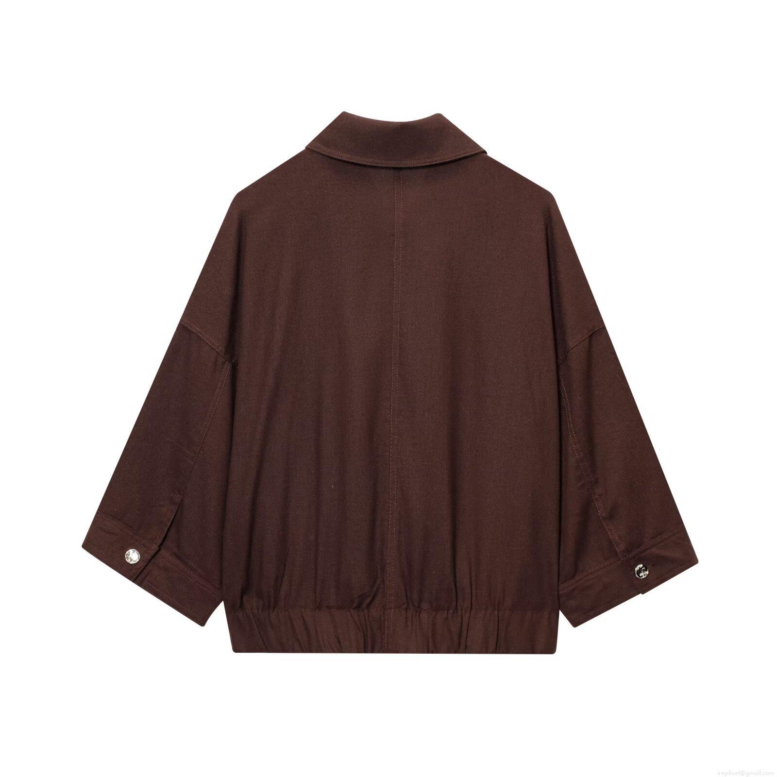 Women's Short Jacket Woolen Feel Lapel Zipper Outerwear With Pockets...