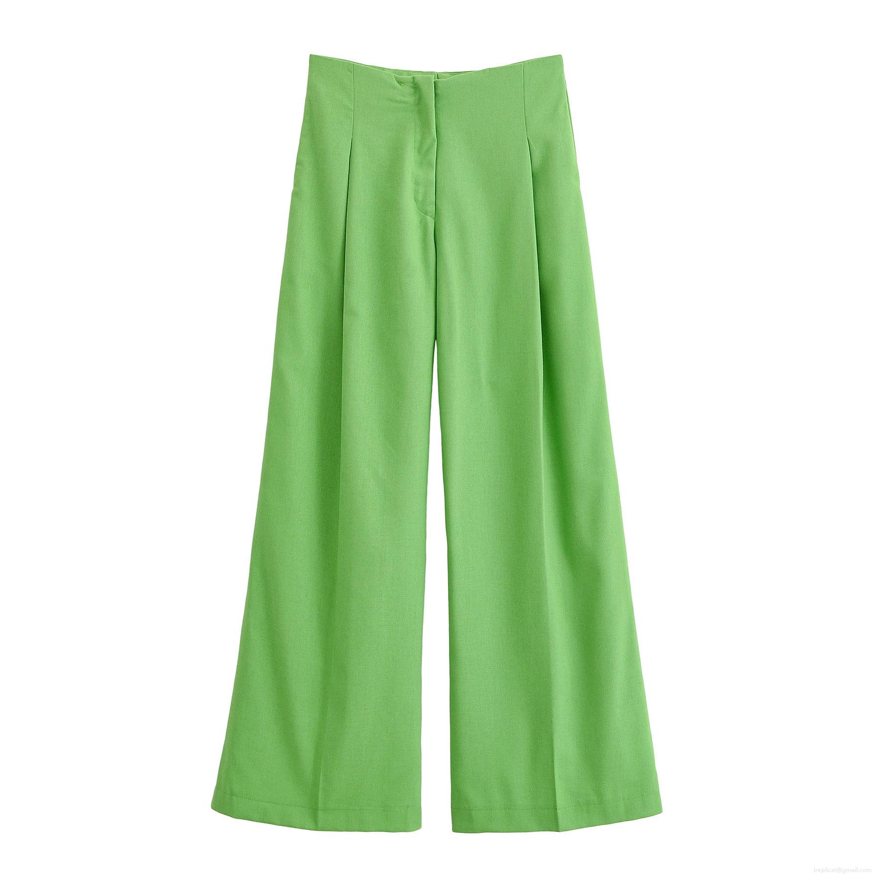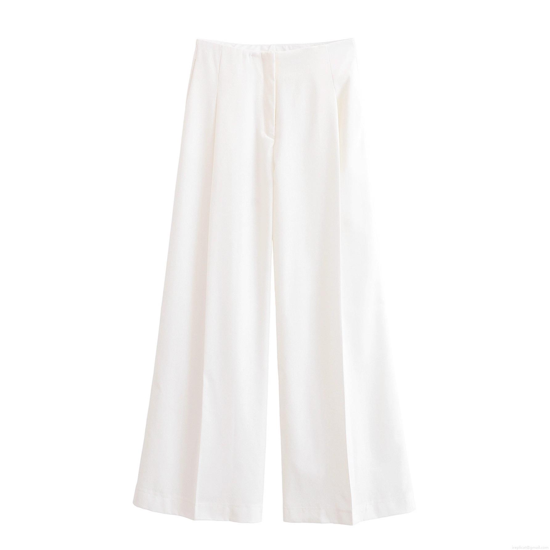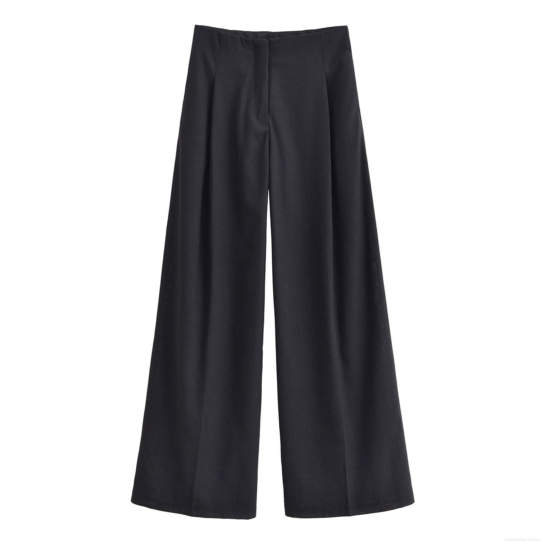 Women High Waist Wide Leg Trousers Polyester Woven Pleated Front...