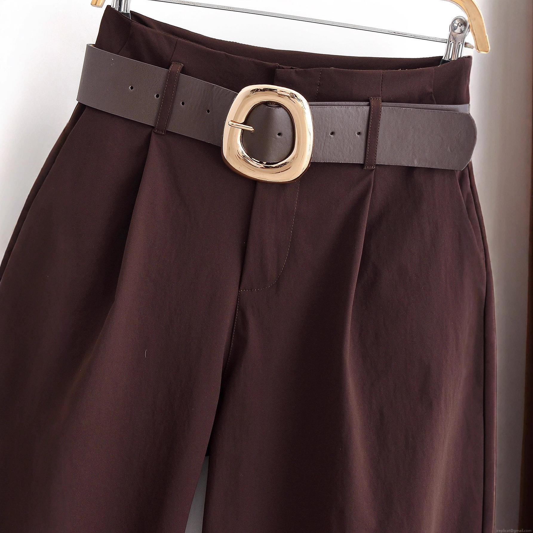 Solid Color, Belt Decoration, Wide-leg, Pleated Design