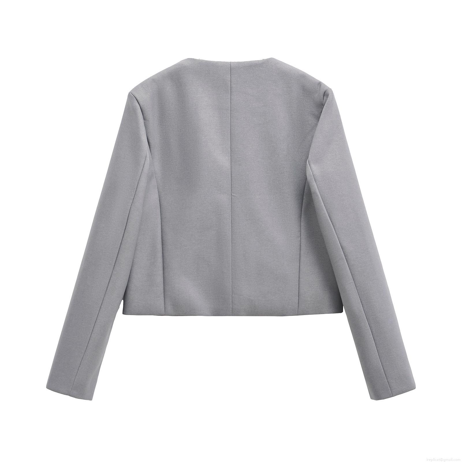Women's Solid Round Neck Single Breasted Long Sleeve Short Blazer Jacket Chic Streetwear Cardigan Outerwear Winter Fashion Elegant Women Tops