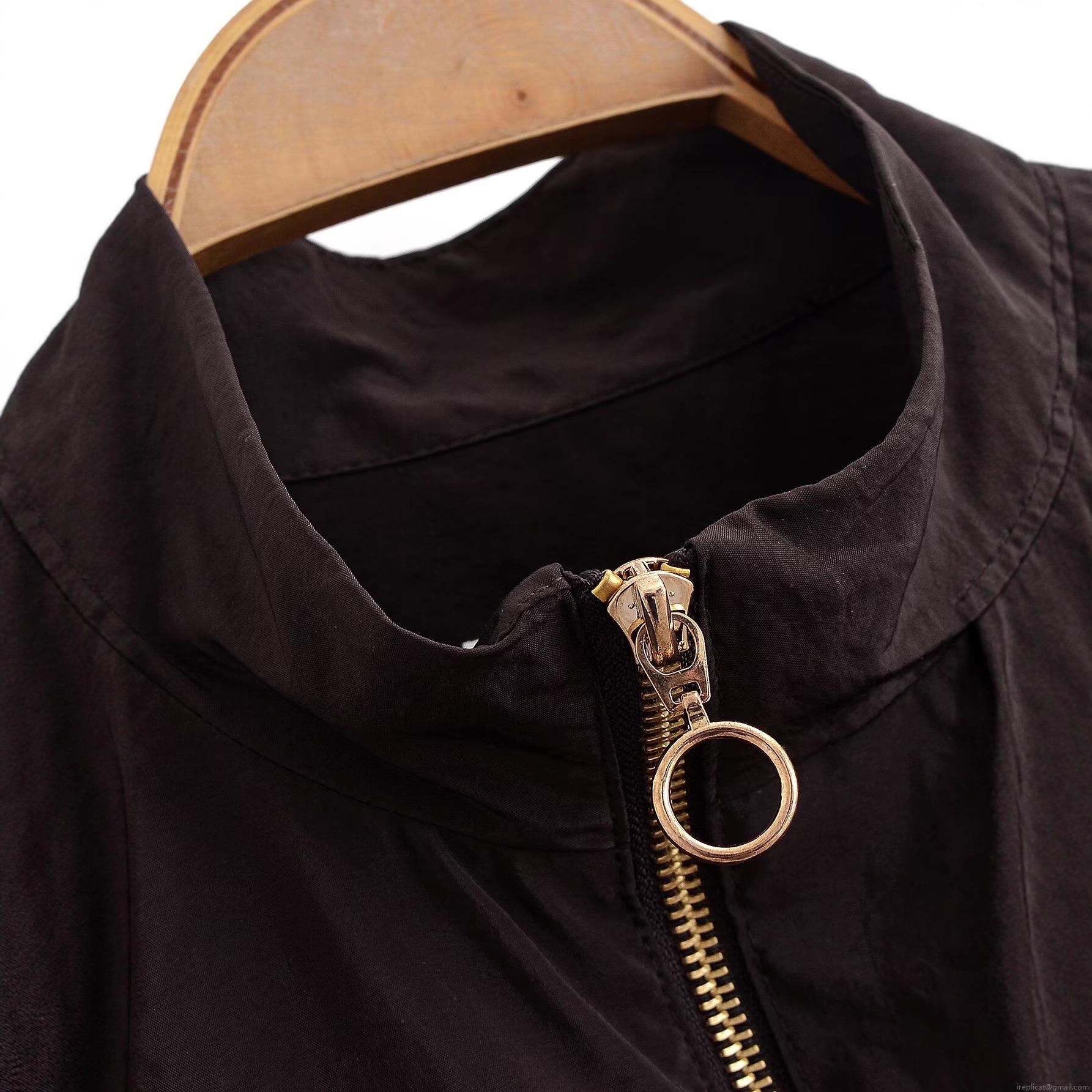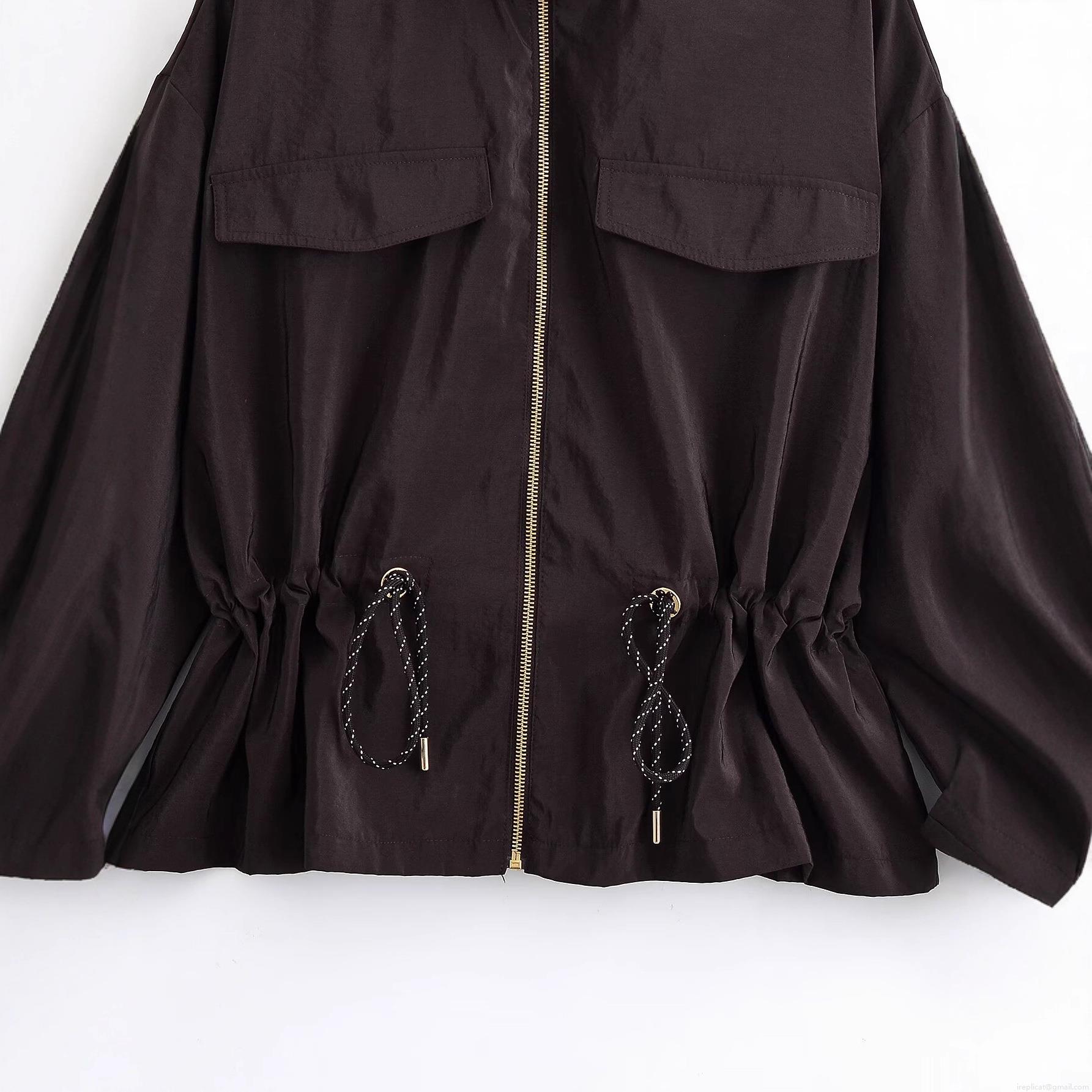 Women's Stand Collar Long Sleeve Jacket Lightweight Polyester Windbreaker With Drawstring Waist And Gold Zipper Solid Color Casual Streetwear Coat