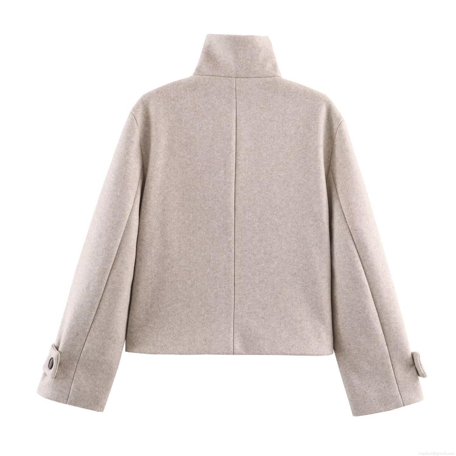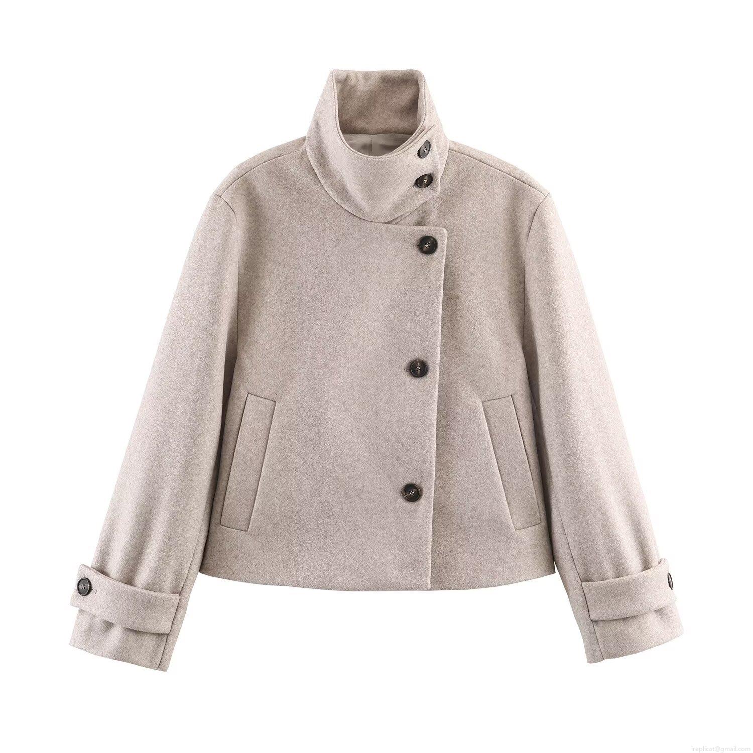 Women's Stand Collar Woolen Coat Single Breasted Long Sleeve Short Jacket Autumn Winter European Street Style Outerwear for Ladies