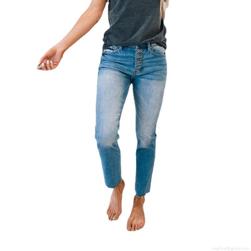 Women's Straight Leg Jeans High Waist Polyester Blend Denim Pants Five Button Fly Raw Hem Washed Casual Trousers for Women Daily Wear Versatile Blue Jeans Bottoms