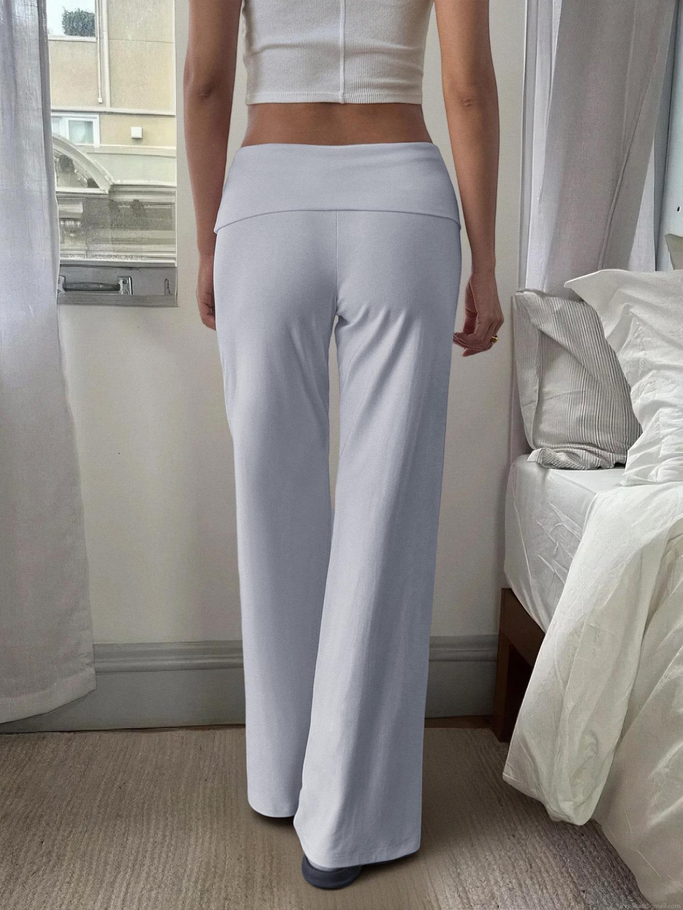 Women's Straight Wide Leg Pants Viscose Elastane Blend Fold-over Waist Casual Holiday Solid Color High Waist Lounge Trousers Comfortable Soft Autumn Winter Bottoms