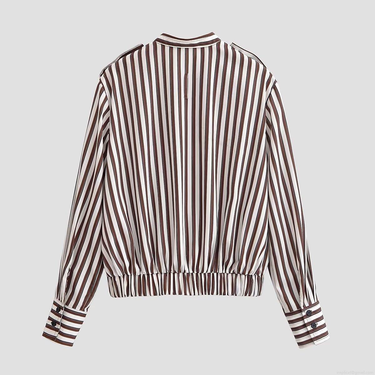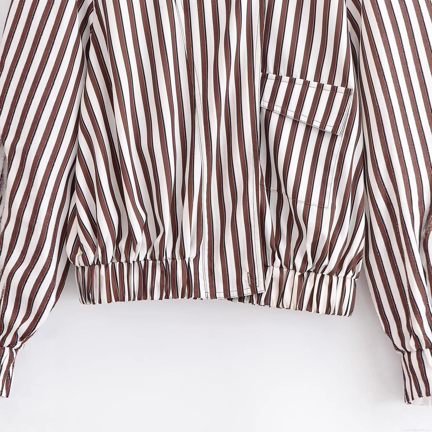 Women's Striped Bomber Jacket 100% Polyester Loose Fit Pilot Coat With Zipper Pocket Casual Streetwear Long Sleeve Outerwear For Women