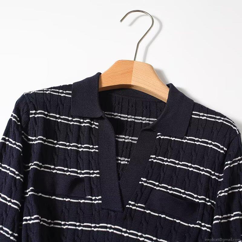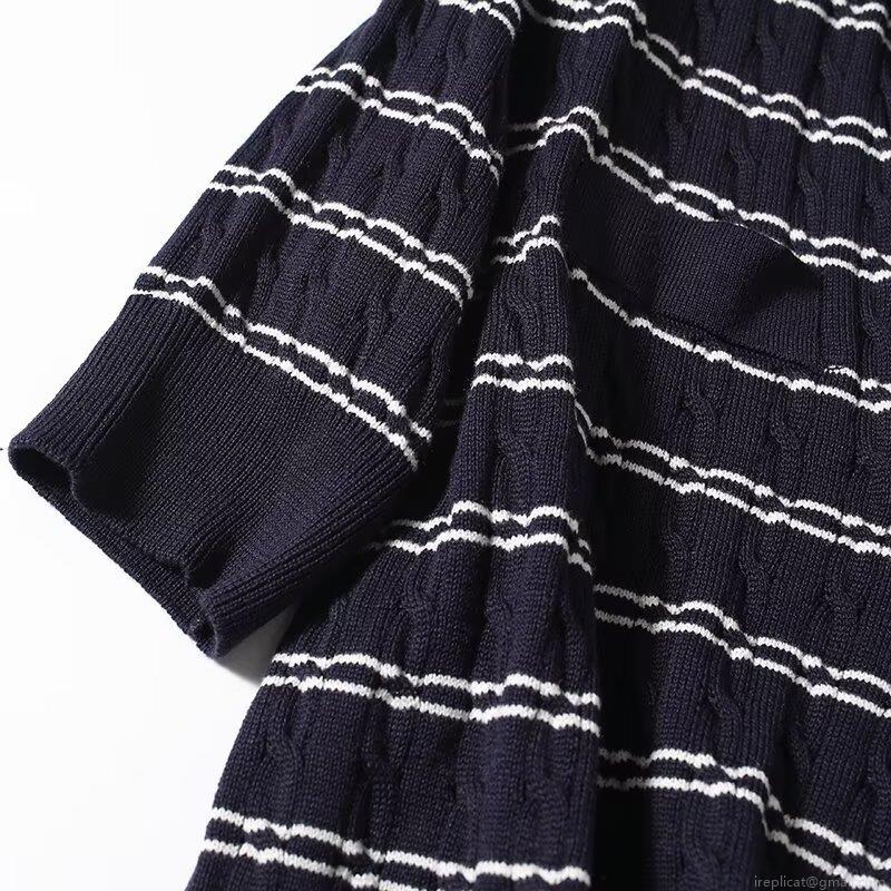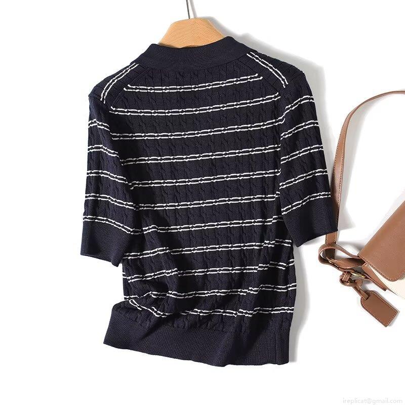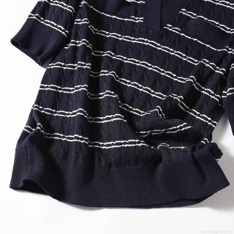 Women's Striped Cable Knit Polo Shirt Short Sleeve V-Neck Navy Blue White Contrast Casual Commute Summer Knitwear Top