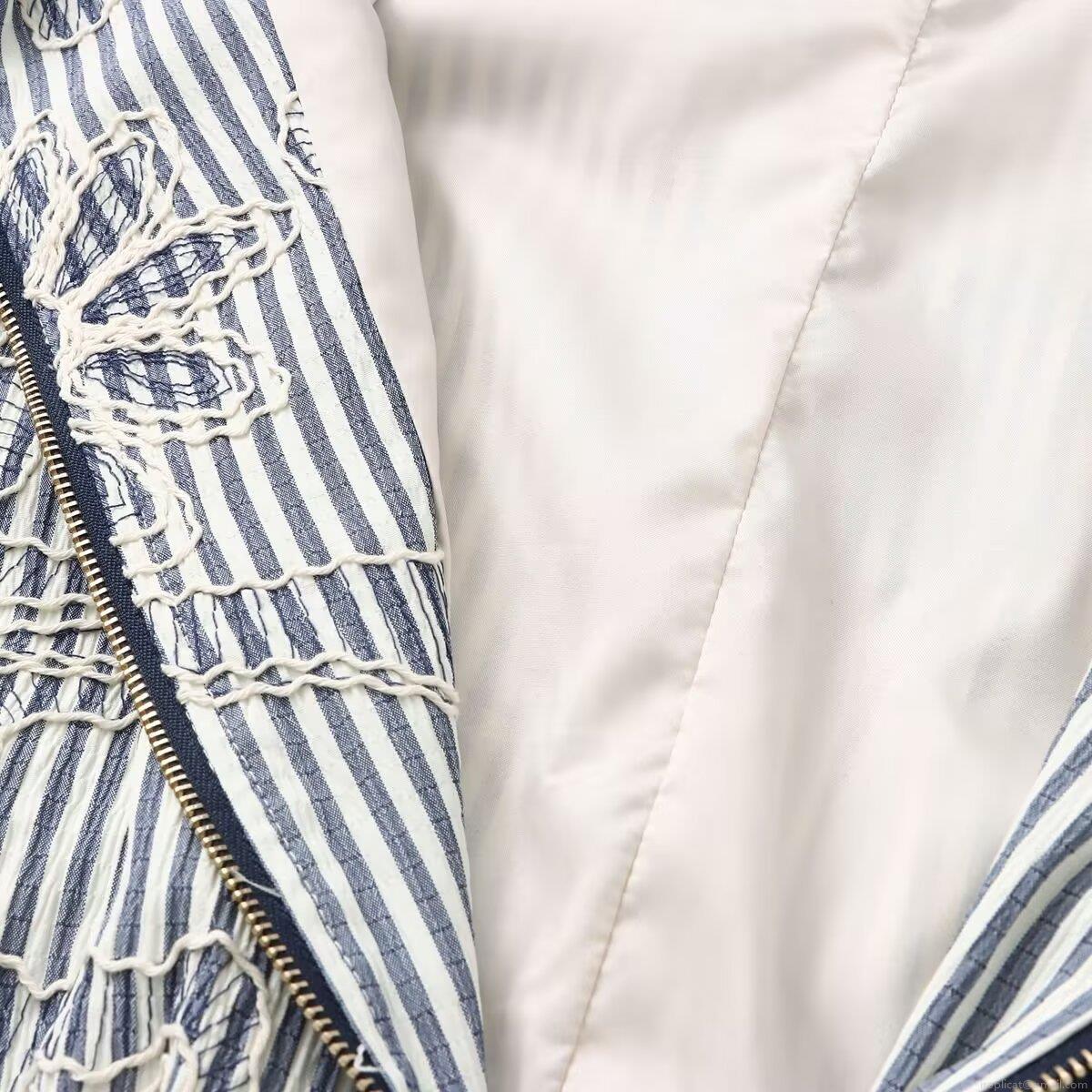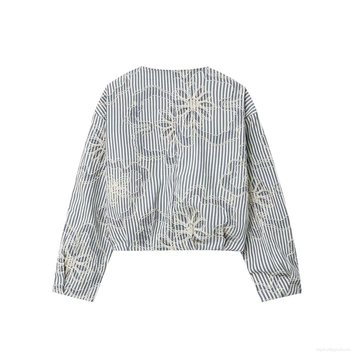 Women's Striped Embroidery Jacket Floral Pattern Zipper Front Long Sleeve Polyester Outerwear Coat For Casual Streetwear Autumn