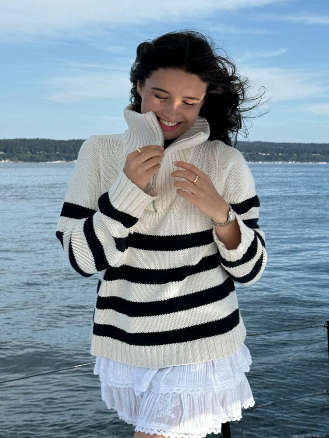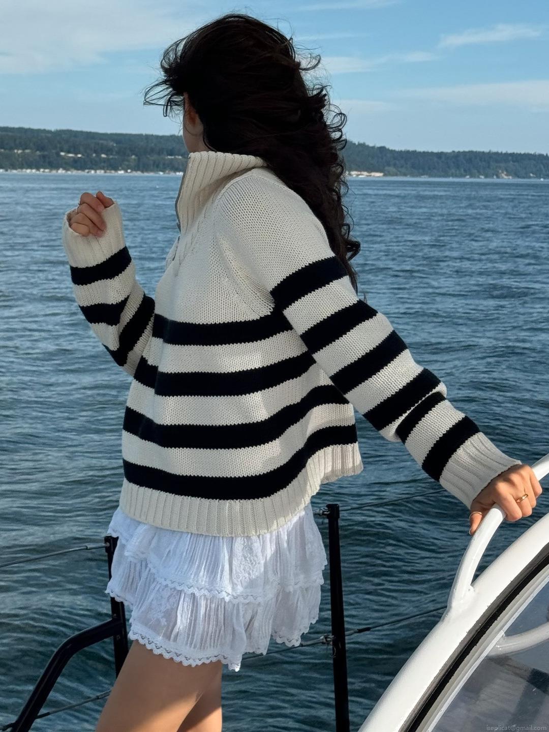 Stripe, Half Zipper, Color-blocked Stripes, Chunky Knit