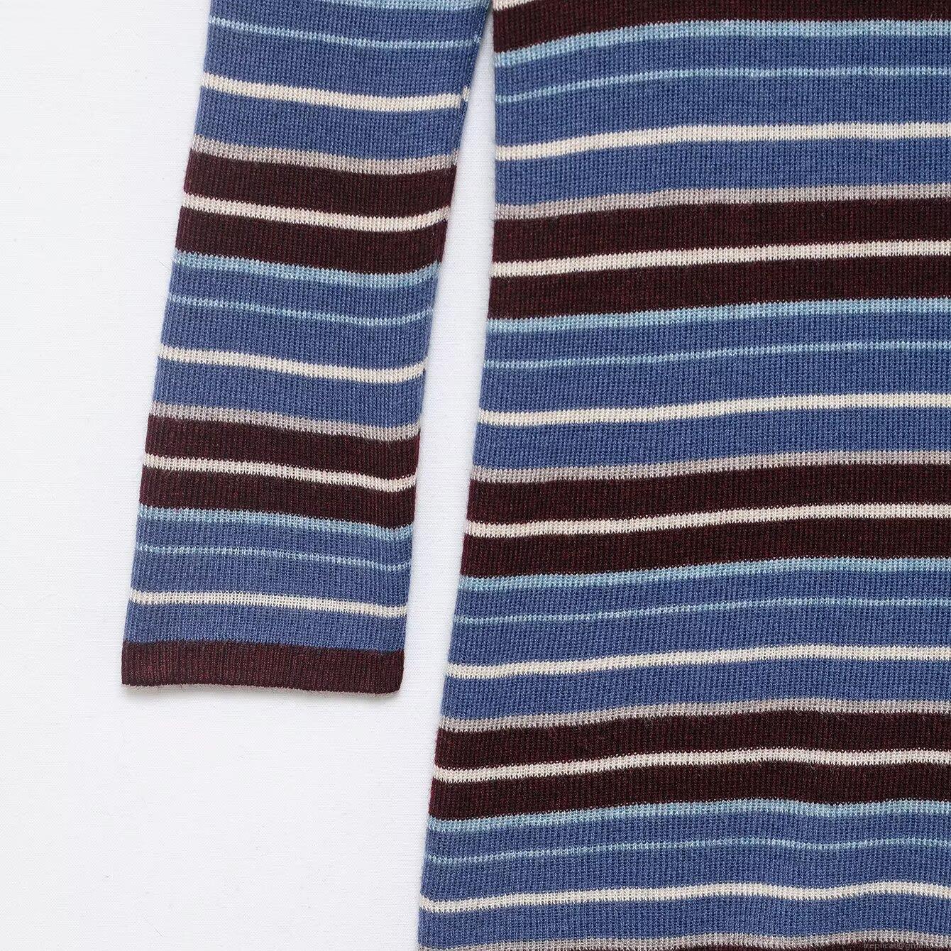 Women's Striped Knit Sweater Mock Neck Slim Fit Long Sleeve Pullover Top 100% Polyester Comfortable Soft Winter Autumn Knitwear For Daily Wear Casual Style