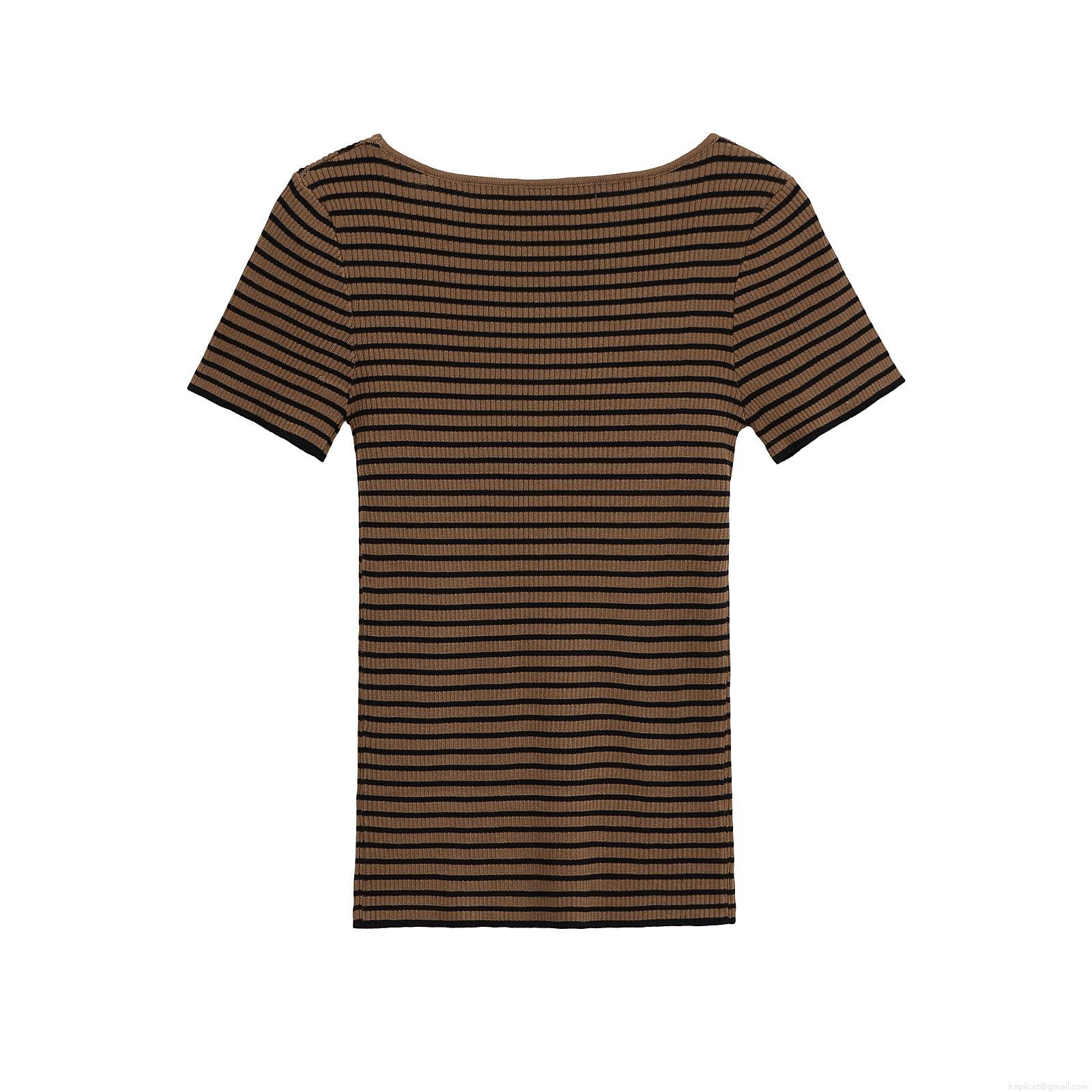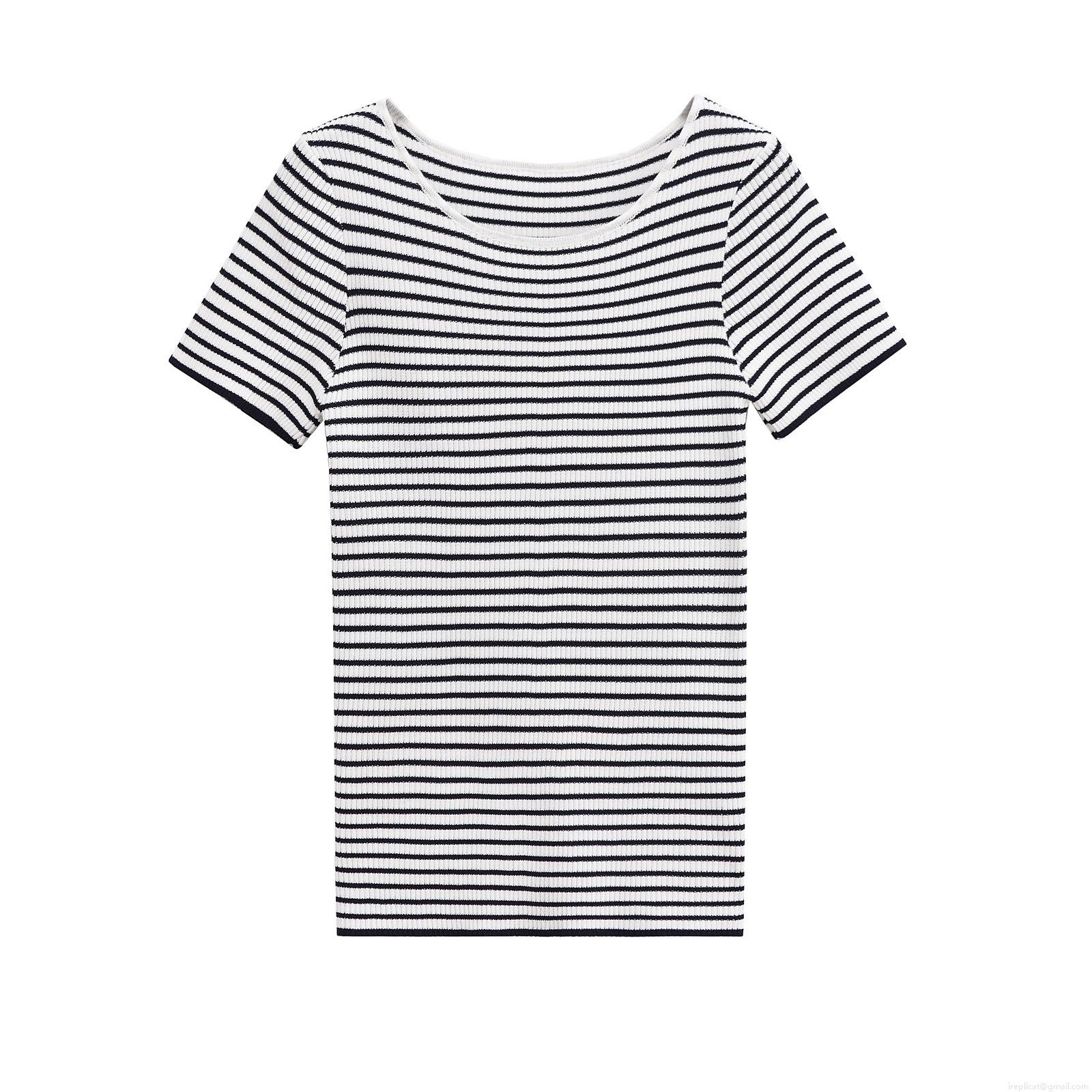 Women's Striped Knit T-Shirt Slim Fit Mercerized Cotton Short Sleeve Round Neck Casual Summer Streetwear Tee Top For Women