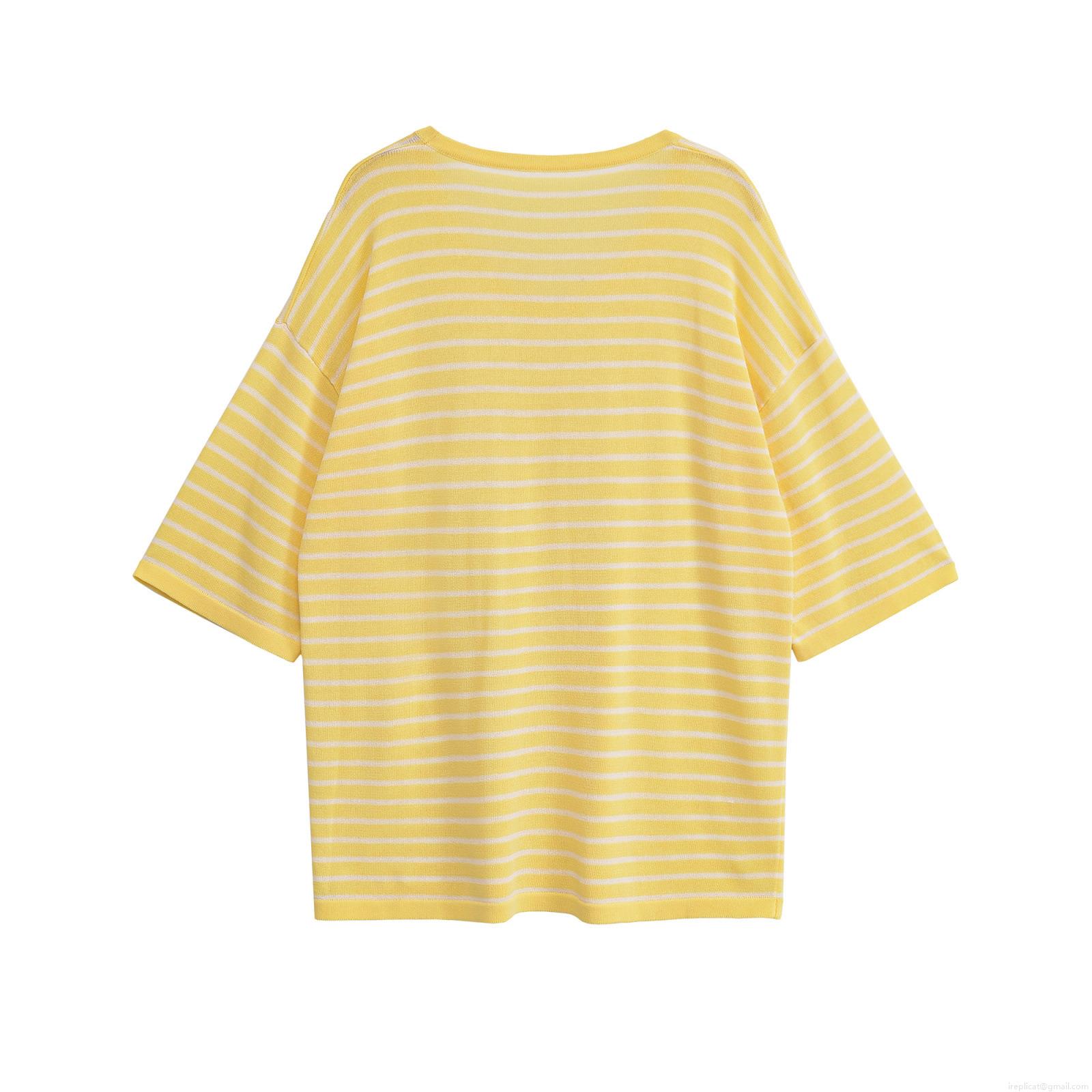Women's Striped Knit T-Shirt Summer Short Sleeve Crew Neck Top Casual Loose Pullover Streetwear Mercerized Cotton Stripe Tee For Women