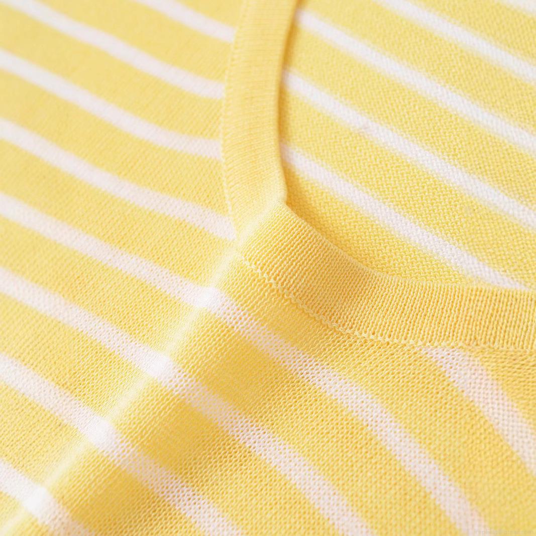 Women's Knitted Hollow Out T-Shirt V-Neck Contrast Stripe Breathable...