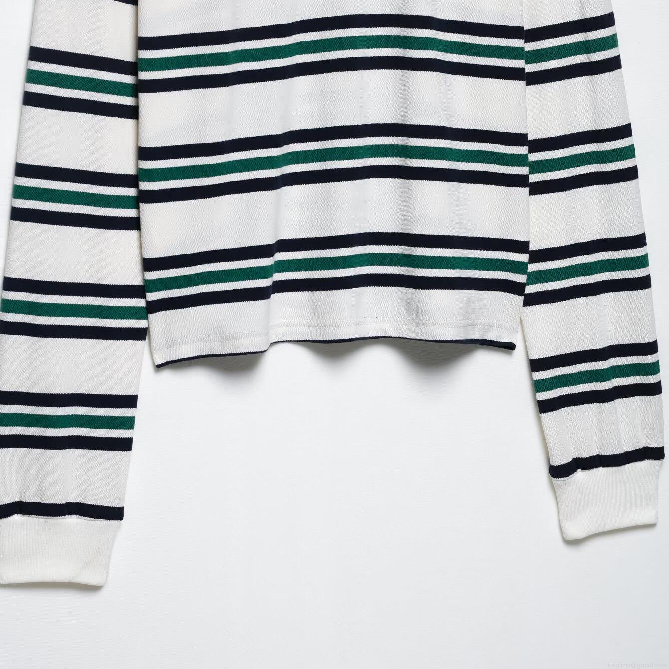 Women's Striped Long Sleeve Polo Shirt Contrast Color Knit Top Preppy Style Casual Pullover For Spring Autumn Ladies Clothing