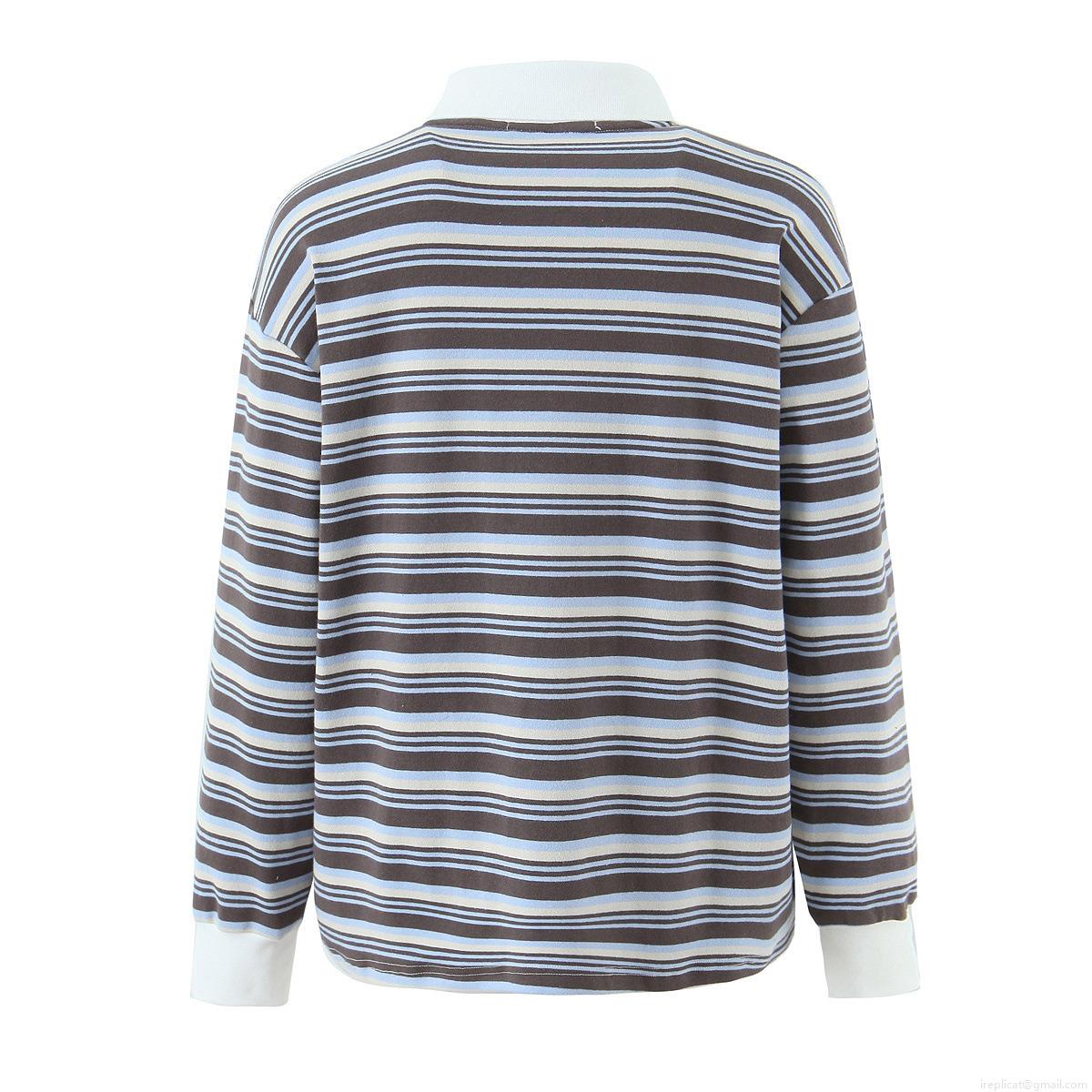Women's Striped Long Sleeve Polo Shirt Cotton Blend Breathable Contrast Color Lapel Top Casual Streetwear Autumn Fashion Trendy Jifan Style Tee