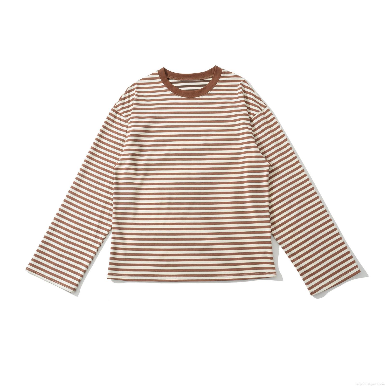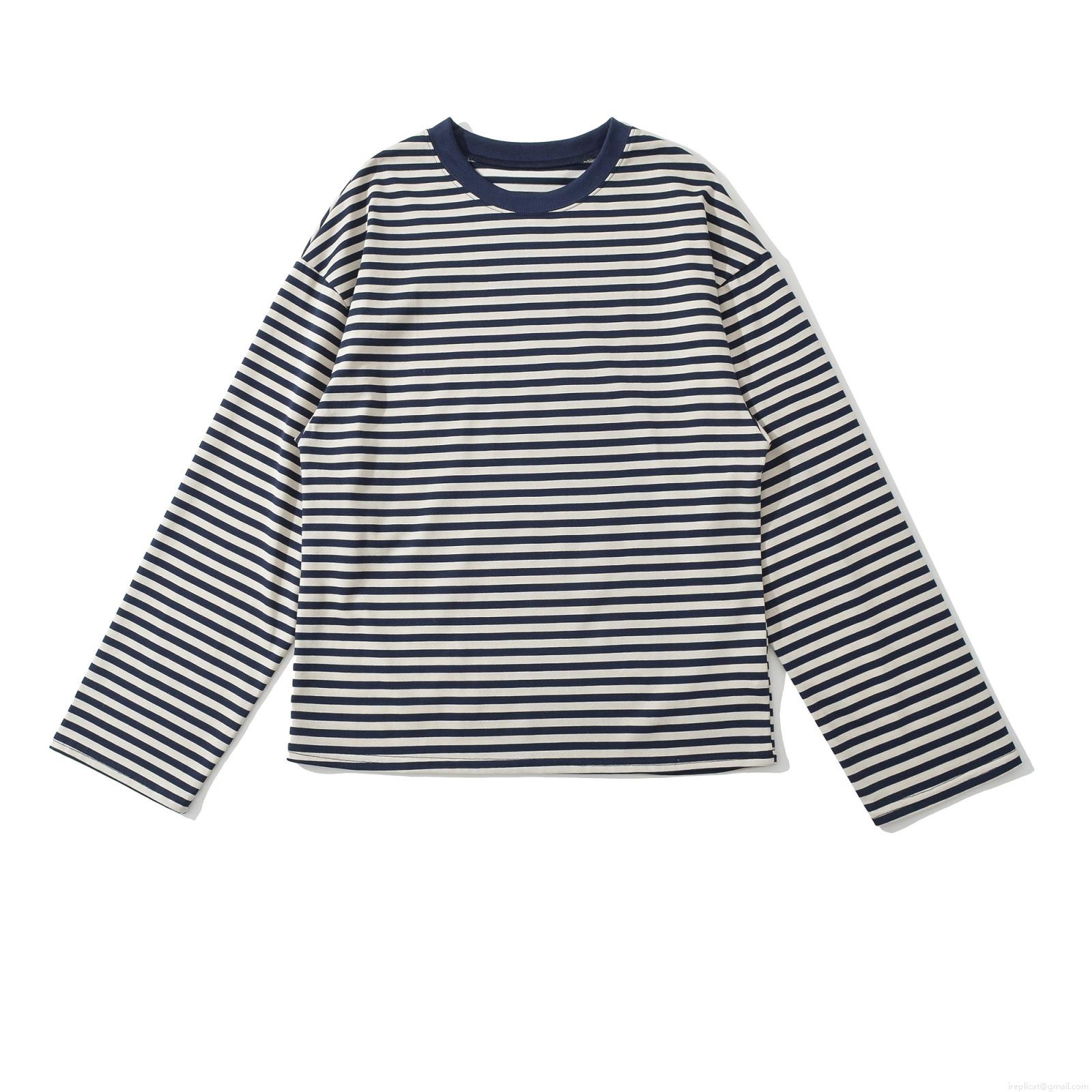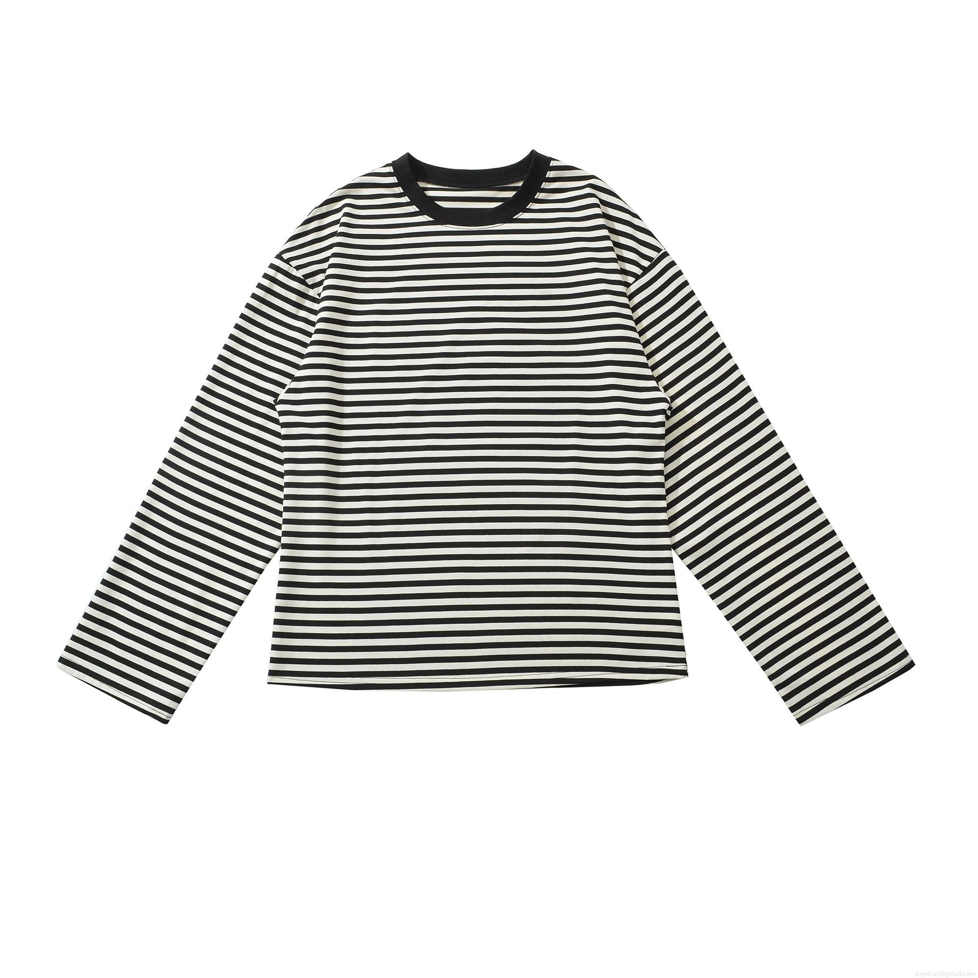 Women's Striped Long Sleeve T-Shirt Contrast Color Round Neck Cotton Blend Pullover Casual Street Style Tops For Fall Autumn