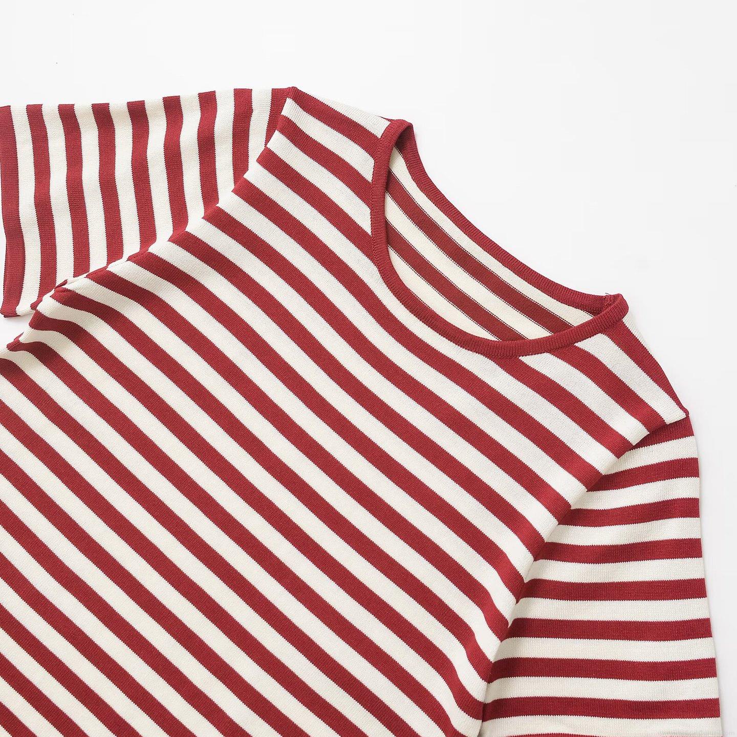 Women's Striped Short Sleeve Knit T-Shirt Mercerized Cotton Polyester Ribbed Round Neck Minimalist Casual Slim Fit Top For Summer Daily Wear
