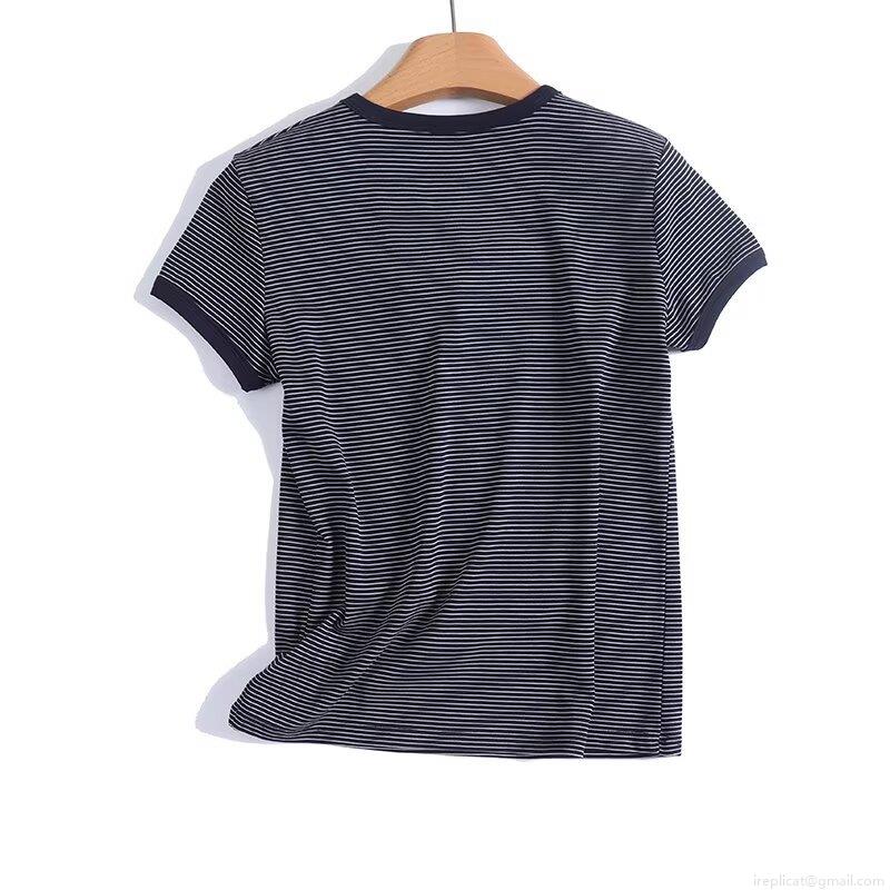 Women's Striped T-Shirt Cotton Spandex Casual Short Sleeve Crew Neck Tee Summer Preppy Style Streetwear Top For Ladies Comfortable Breathable Fashion Clothing