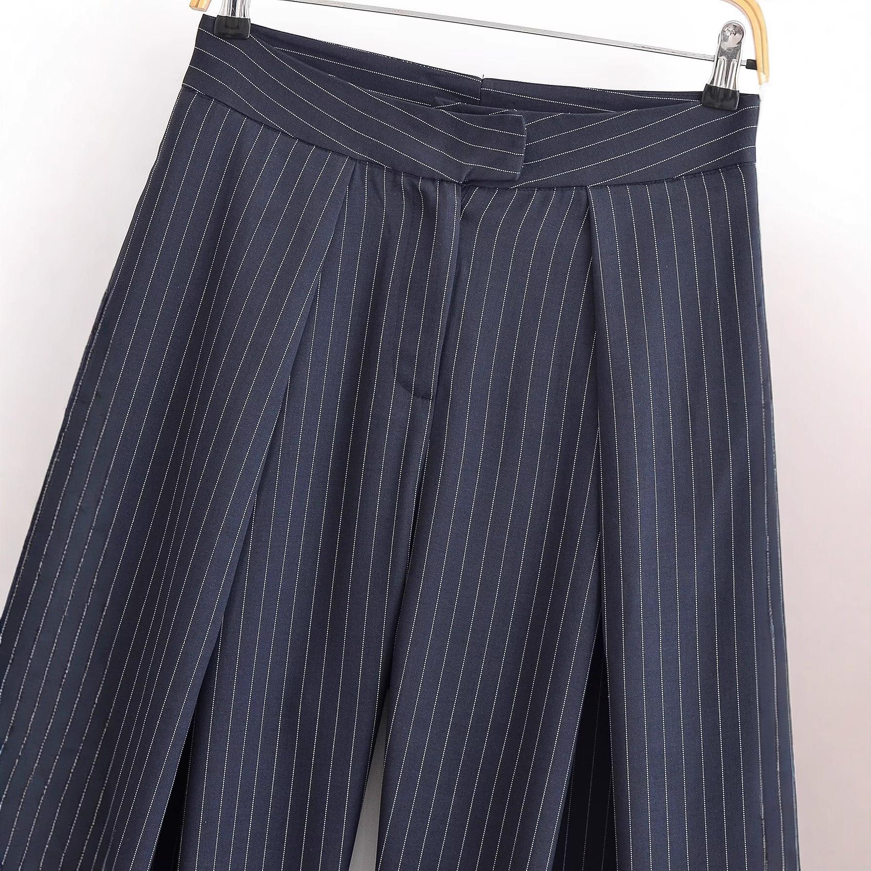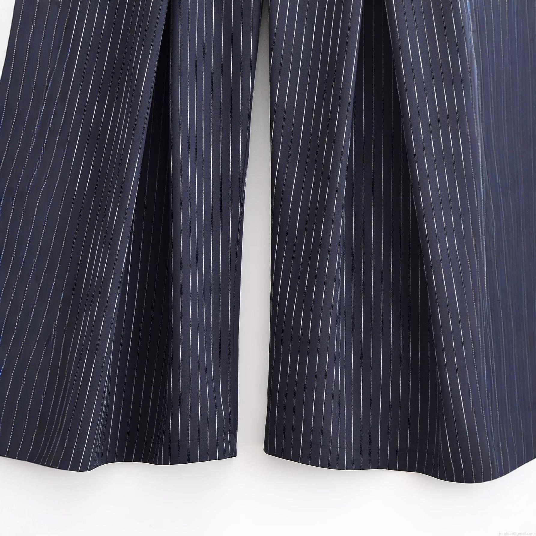 Women's Striped Wide Leg Pants High Waisted 100% Polyester Trousers Casual Loose Straight Leg Office Work Pants Dark Blue Vertical Striped Streetwear Autumn Fashion For Women
