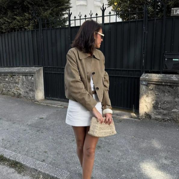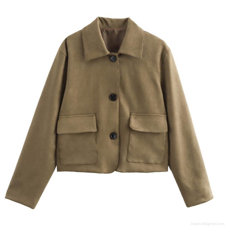 Women's Suede Velvet Jacket Retro Lapel Button Short Outerwear Autumn Winter Fashion Old Money Style Ladies Casual Coat With Large Pockets