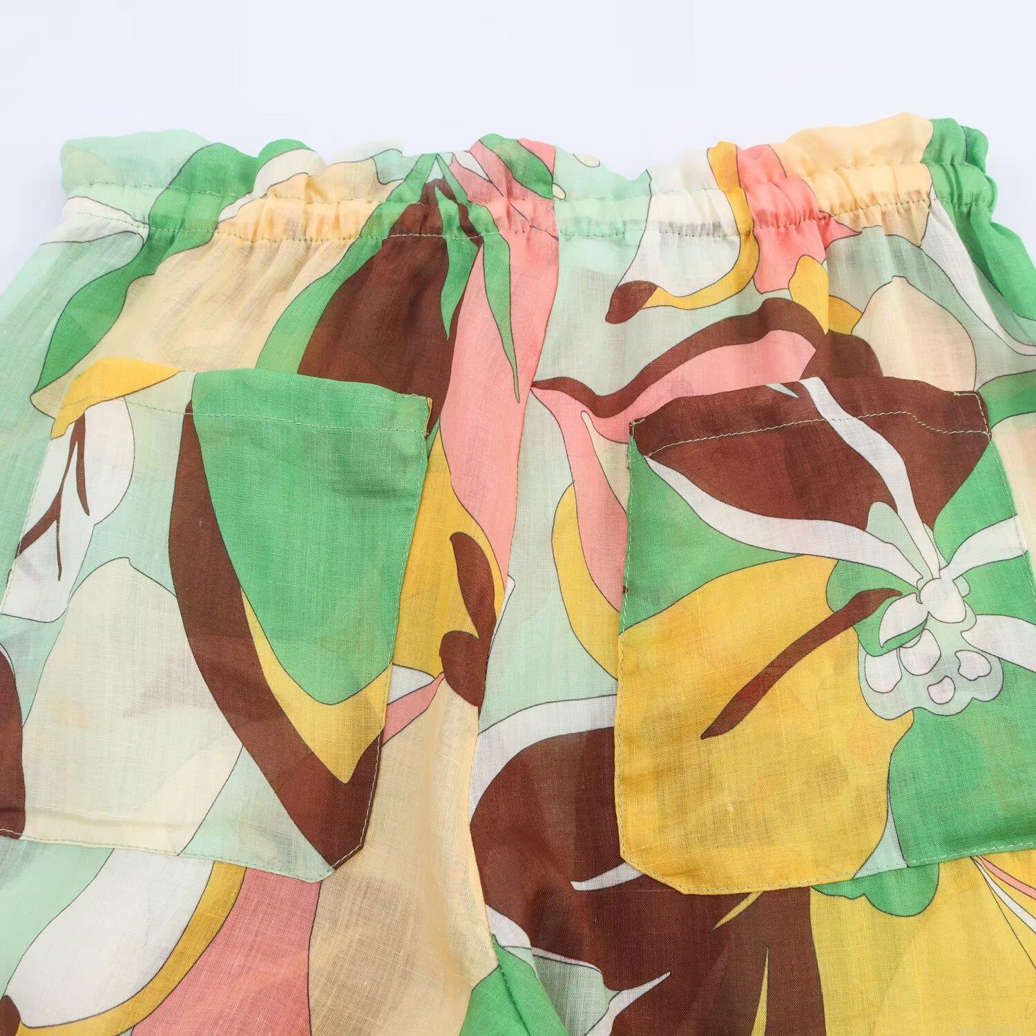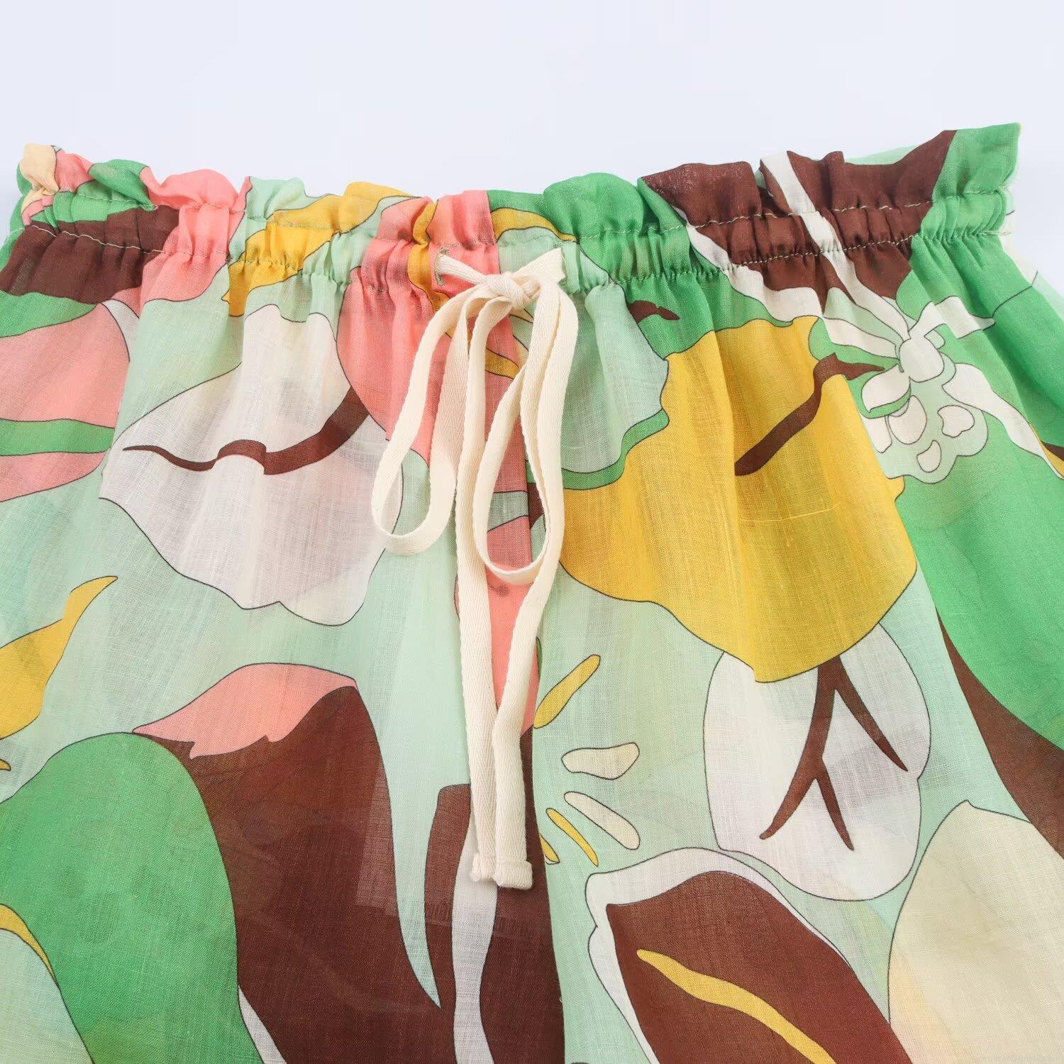 Women's Summer Casual Linen Wide Leg Pants Fashion Abstract Floral Printed Drawstring Elastic Waist Loose Trousers With Pockets
