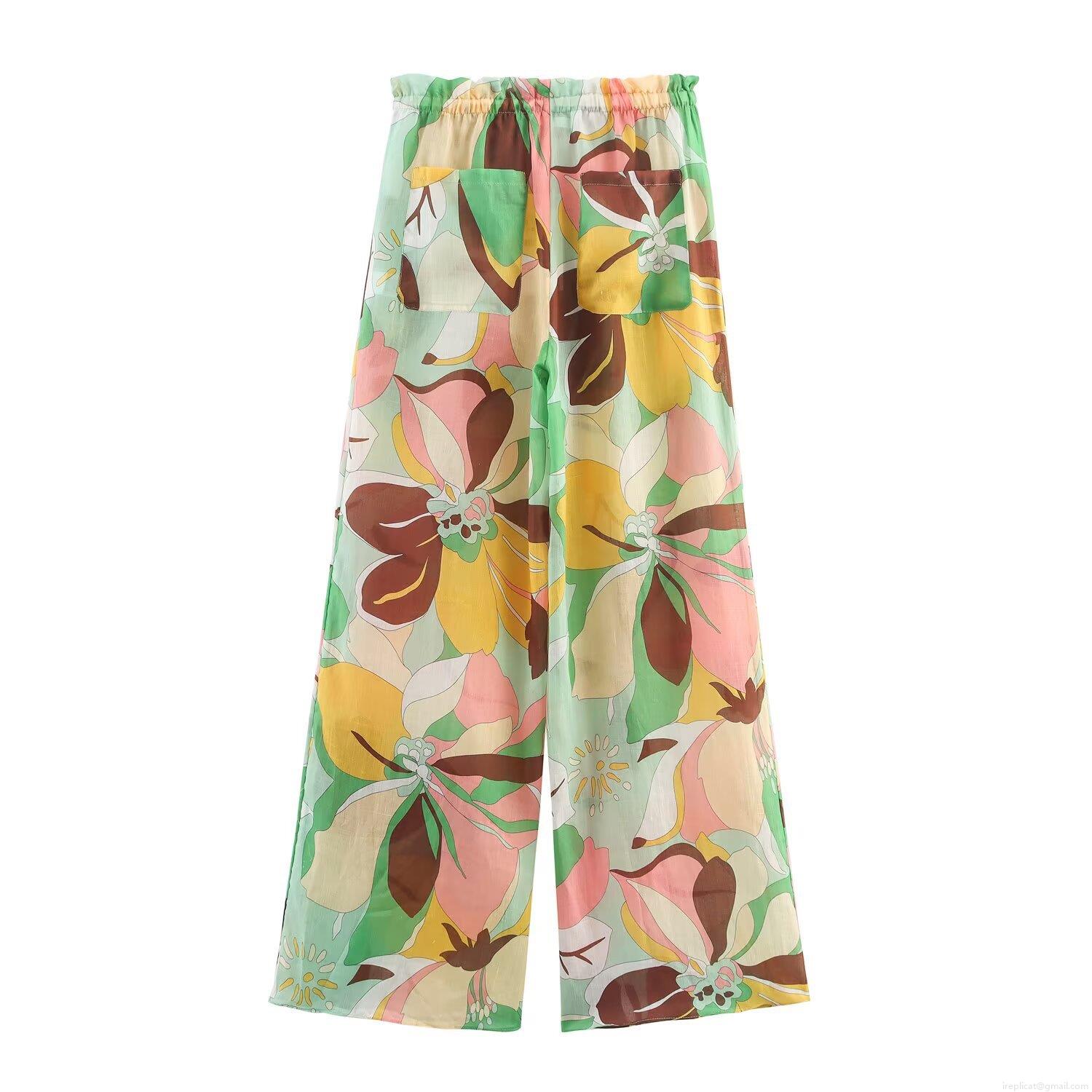 Women's Leopard Print Floral Wide Leg Pants Elastic High Waist...