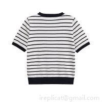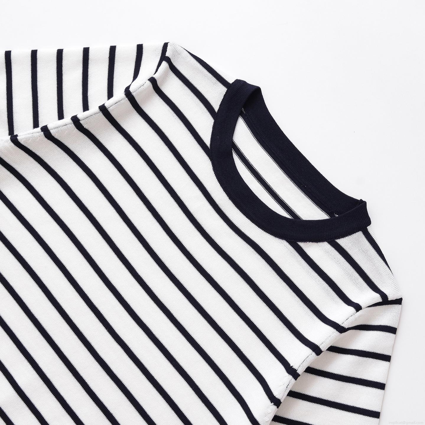 Women's Summer Casual Striped Knit Top Short Sleeve Round Neck Polyester Pullover T-Shirt For Women Daily Fashion Soft Breathable Striped Tee