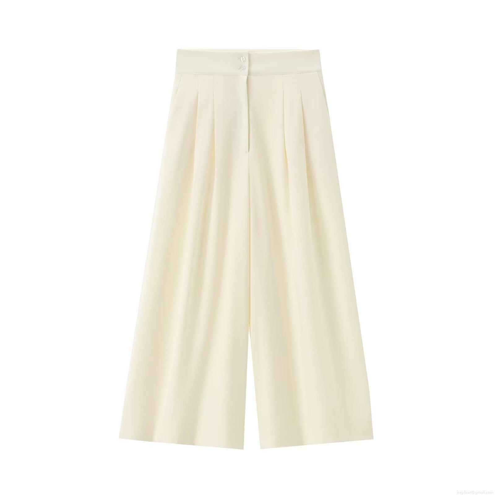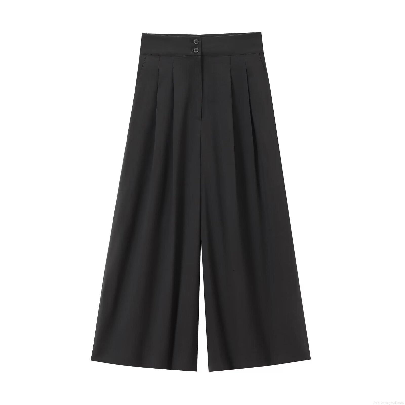 Solid Color, Buttons, Pleats, Wide-leg, High-waisted