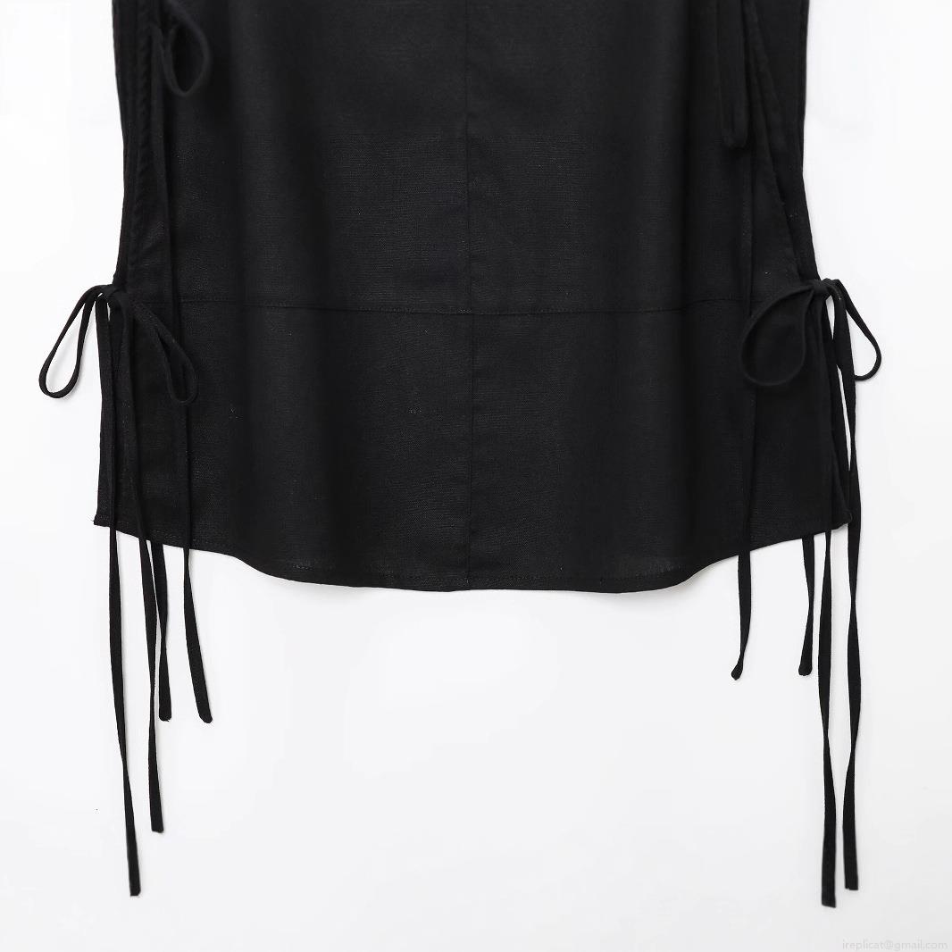 Women's Summer Sleeveless Round Neck Solid Color T-Shirt With Side Bow Tie Design Casual Streetwear Polyester Blend Vest Top For Women