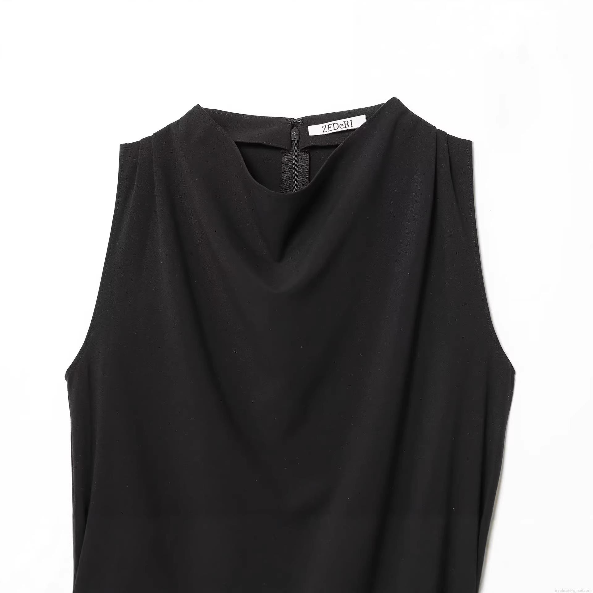 Women's Summer Sleeveless Round Neck Top Street Fashion Casual Cotton Blend Solid Color Tank Top With Detachable Belt Back Zipper Side Slit Hem Clothing For Women