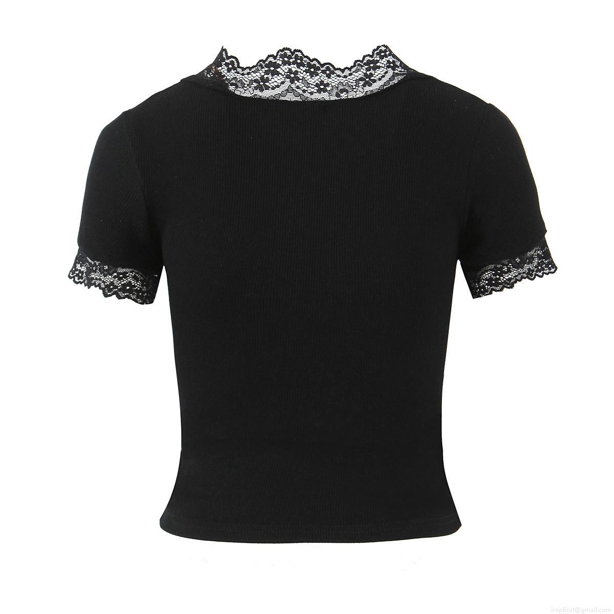 Women's Fashion Lace Satin Splicing T-Shirt Round Neck Short Sleeve...