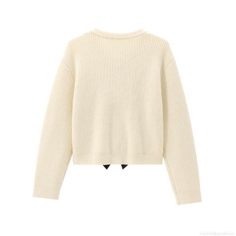 Solid Color, Knitting, Bow, Color Blocking, Ribbed