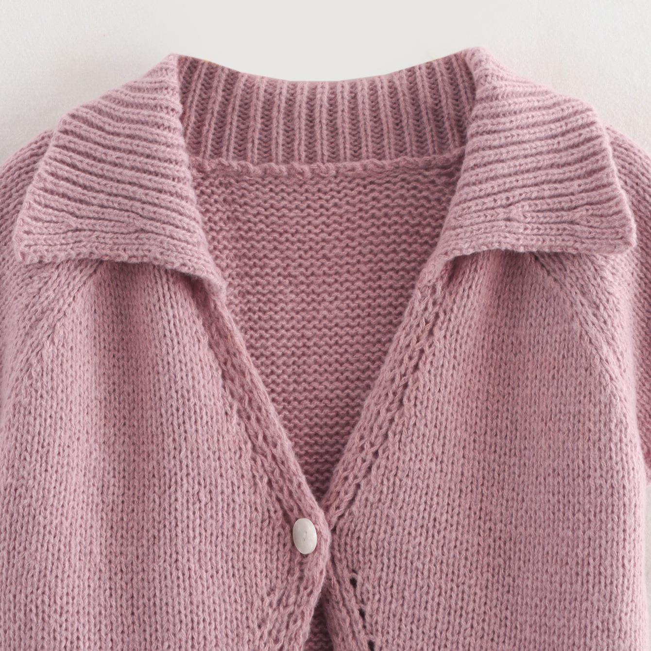 Solid Color, Buttons, Ribbed, Lapel, Knitted Texture