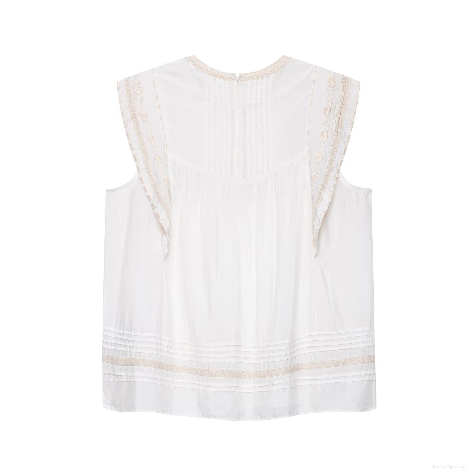 Women's Sweet Embroidered Sleeveless Top Elegant White Lace Patchwork Round Neck Loose Summer Casual Blouse T-Shirt For Women Lightweight Breathable Upper