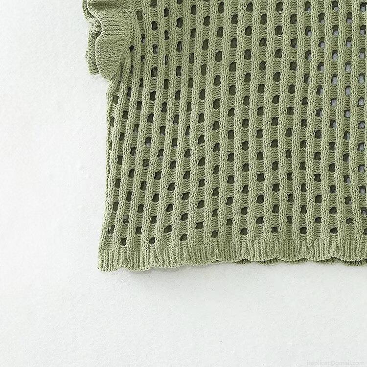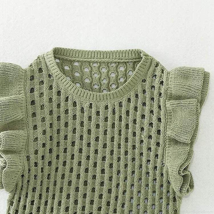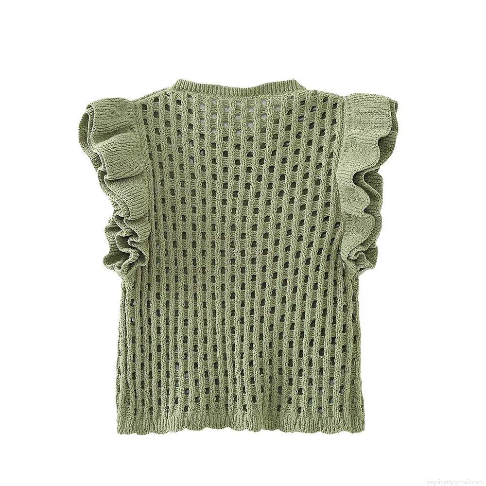 Women's Sweet Hollow Out Knit Vest Top Ruffle Fly Sleeve Round Neck Sleeveless Layering Sweater Solid Color Vintage Style Tank Top For Daily Wear