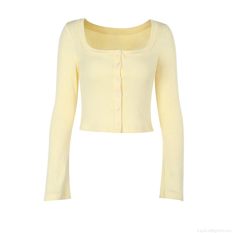 Women's Sweet Square Neck Knitted Cardigan Long Sleeve Slim Fit Short Crop Top Button Ribbed Knit Shirt for Spring Autumn Daily