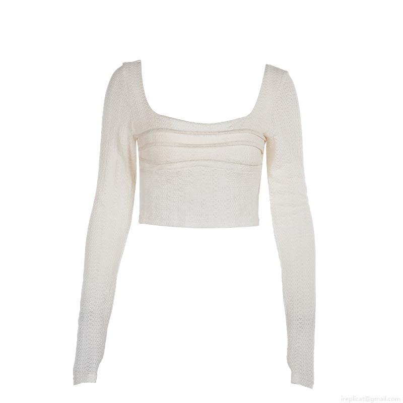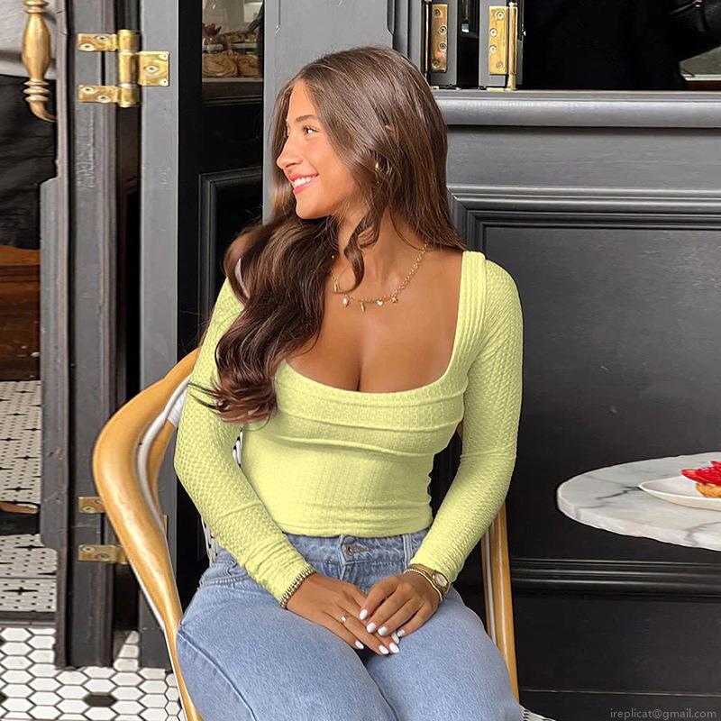 Women's Textured Fabric Square Neck Long Sleeve Top Backless Lace-up Slim Fit Crop T-Shirt Fashion Casual Streetwear Pullover for Autumn Spring