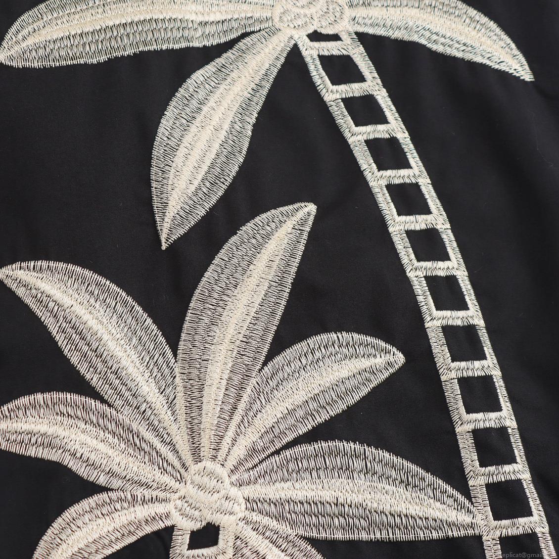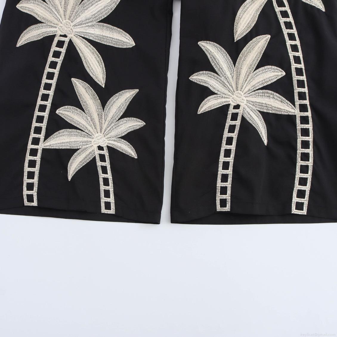 Women's Tropical Vacation Black Straight Leg Pants With White Palm Tree Embroidery Casual Mid Waist Long Trousers Polyester Resort Wear