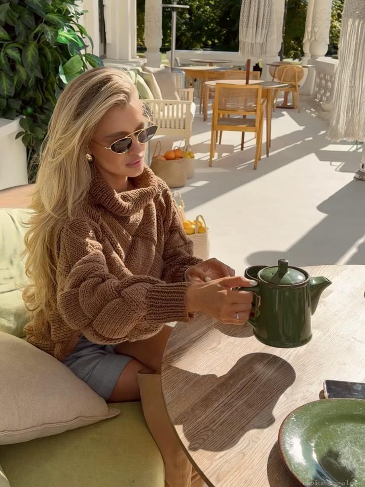 Women's Turtleneck Cable Knit Sweater Brown Oversized Chunky Knit Pullover Tops Autumn Winter Casual Loose Long Sleeve Knitwear