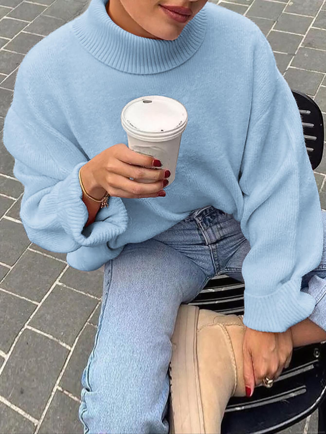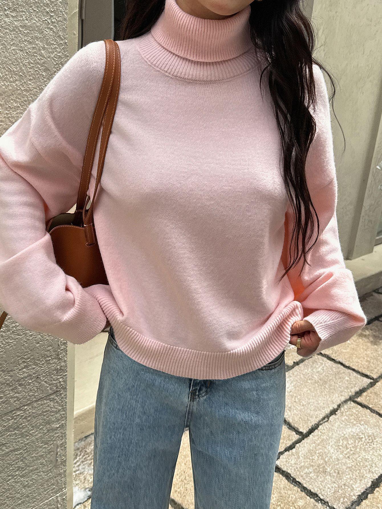Women's Turtleneck Sweater Casual Loose Knit Pullover Soft Acrylic Blend Solid Color Long Sleeve Warm Jumper For Fall Winter Women