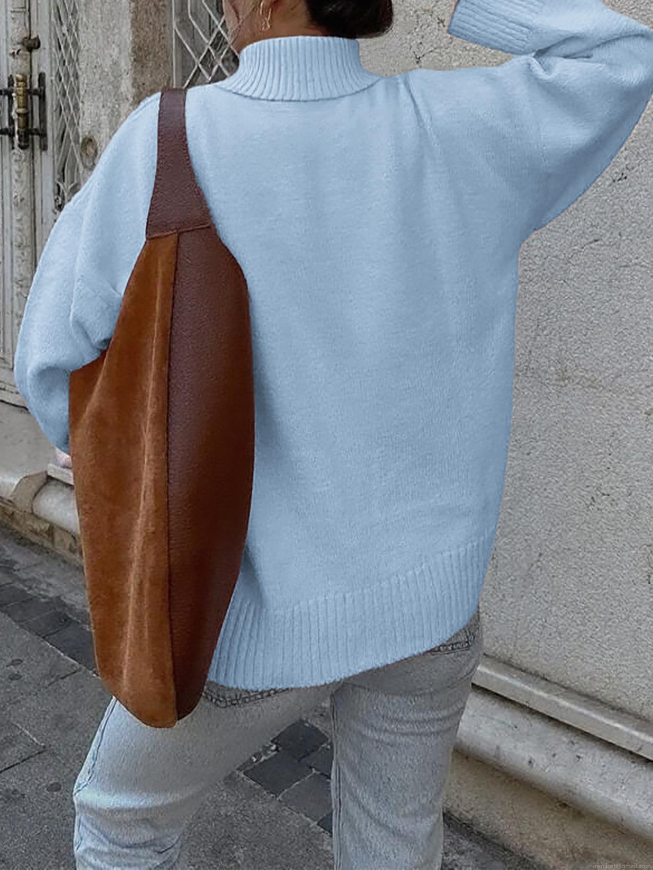 Solid Color, Loose Fit, Turtleneck, Ribbed Cuffs