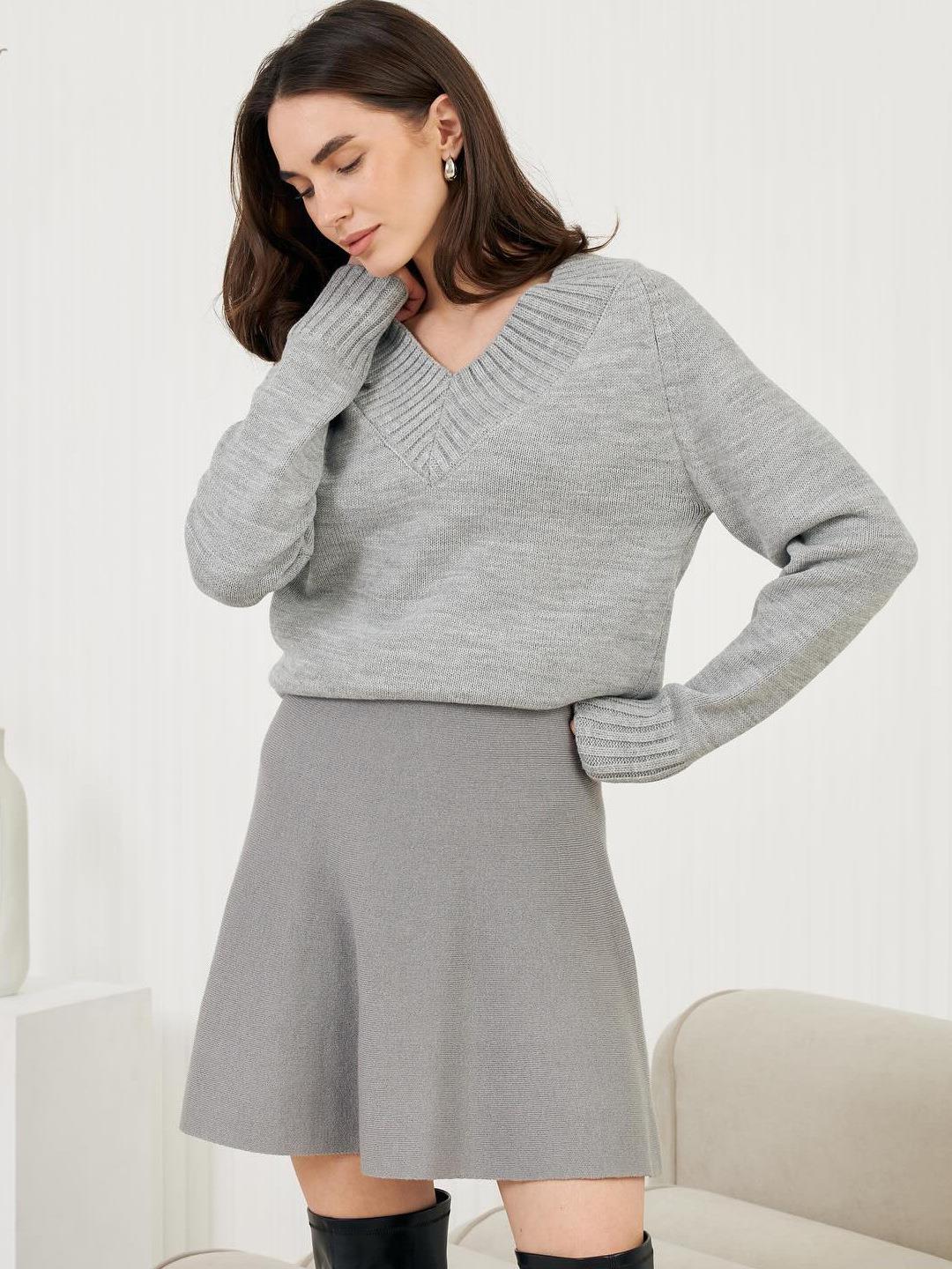 Solid Color, Niche Design, V-neck, Ribbed Decoration, Drop Shoulder Design