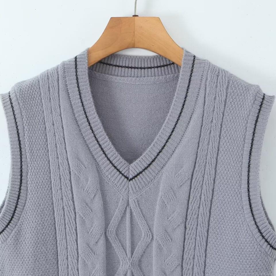 Women's V Neck Sleeveless Cable Knit Sweater Vest Loose Color Block Trim Pullover Knitwear Waistcoat For Fall Winter Casual Streetwear Ladies Tops