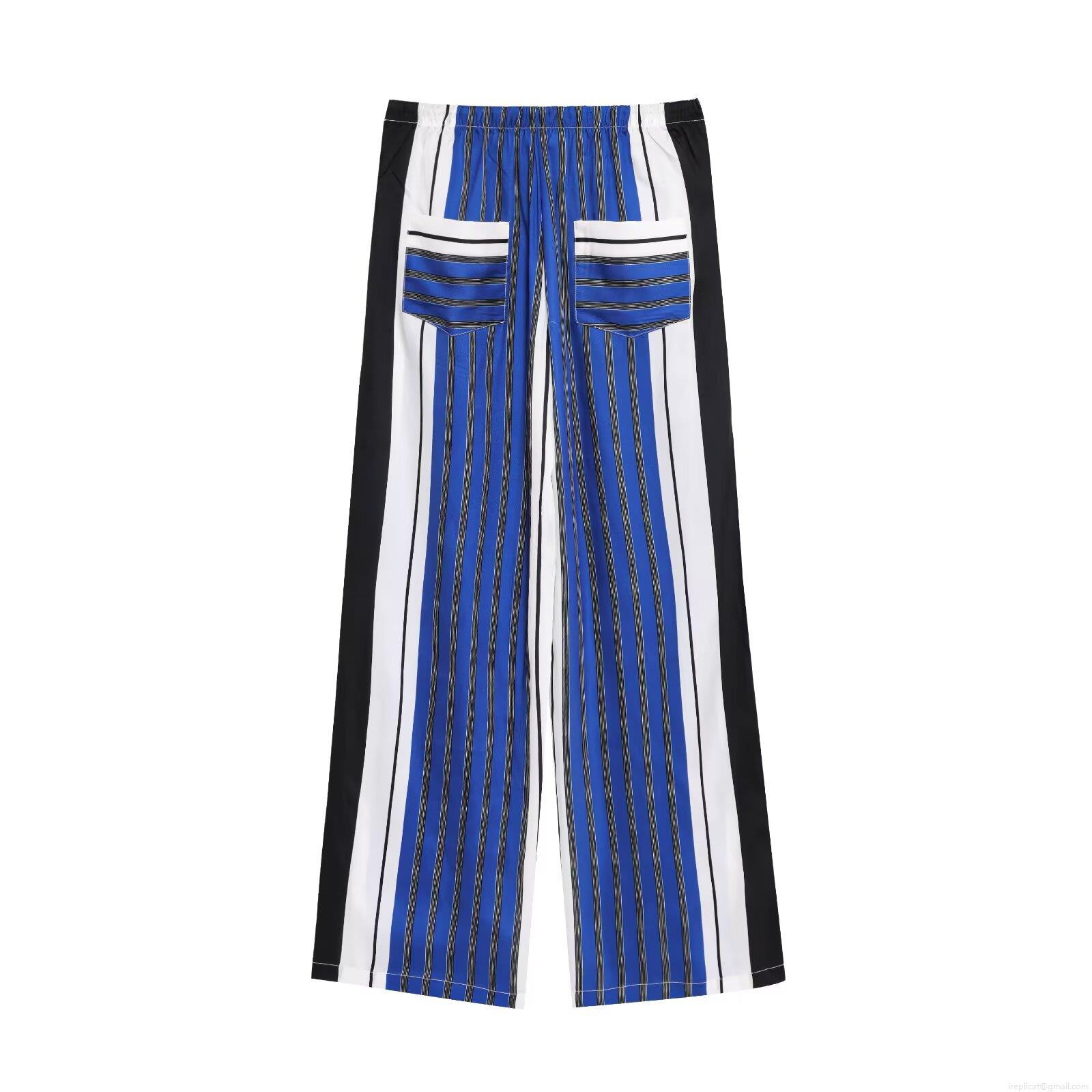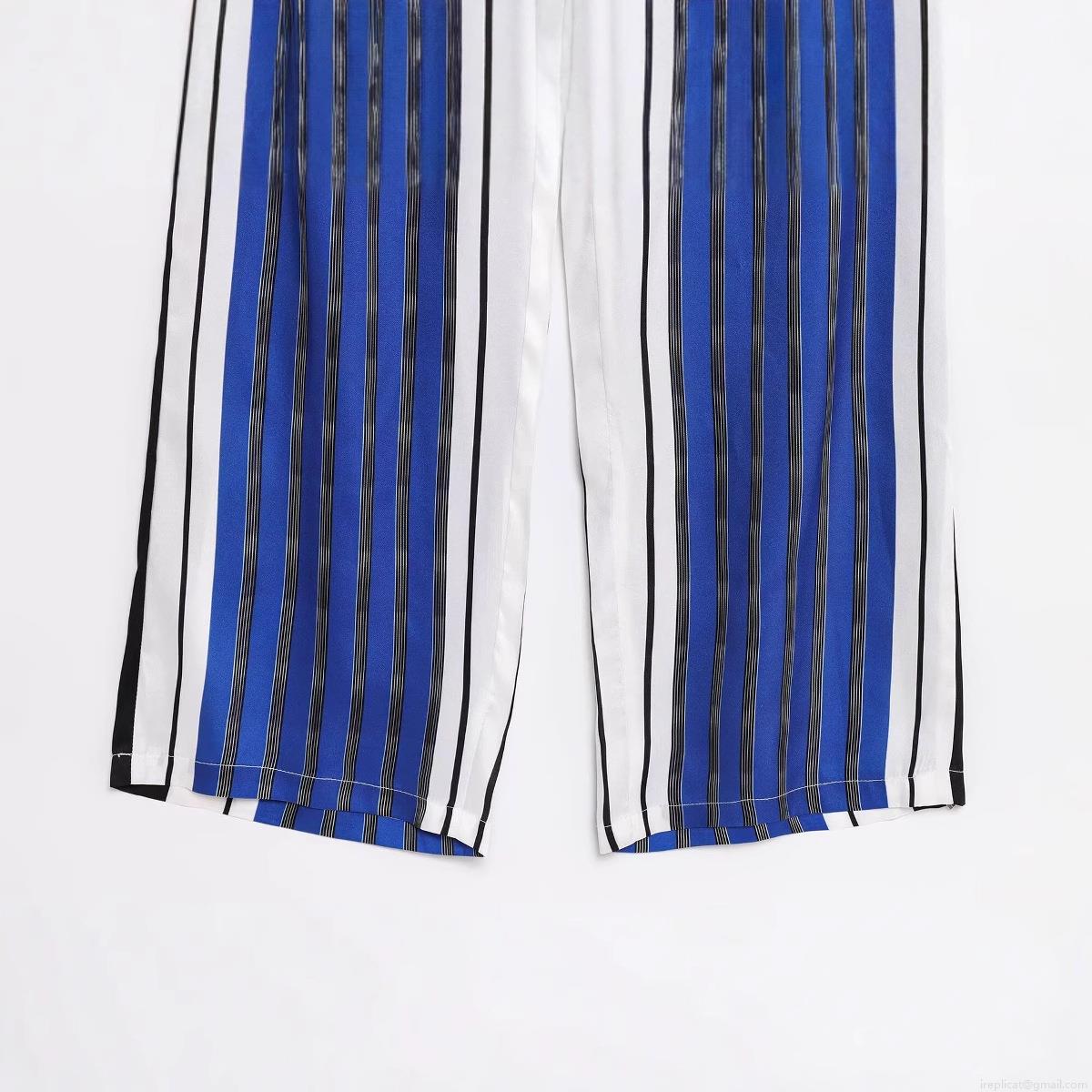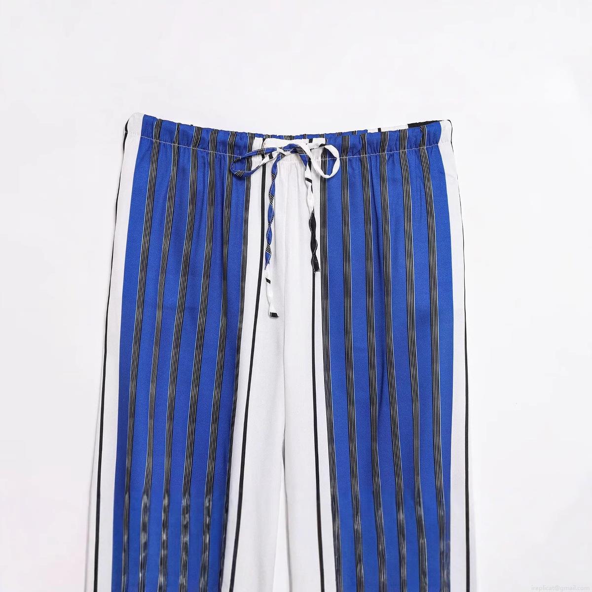 Women's Vertical Stripe Wide Leg Pants High Waist Drawstring Polyester Casual Trousers for Daily Summer Lounge Loose Fit Comfortable Pants