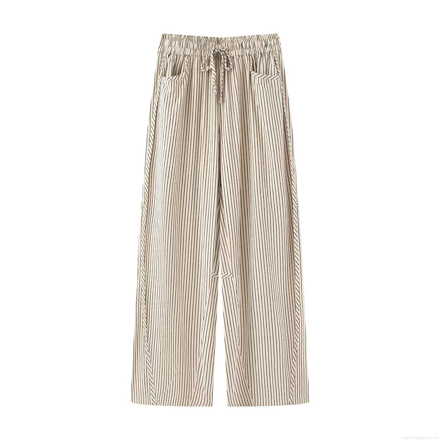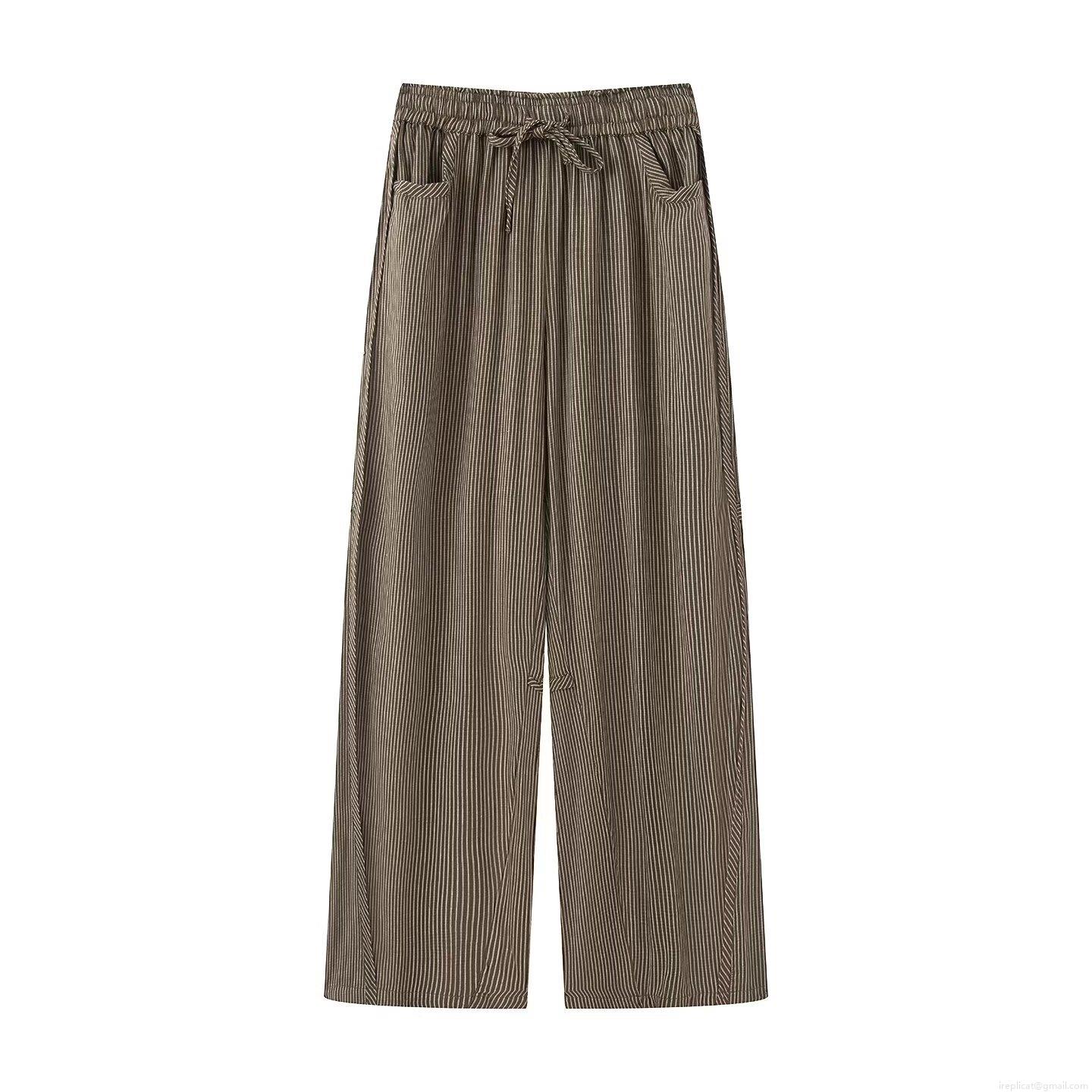 Women's Vertical Striped Wide Leg Pants Elastic High Waist Drawstring Casual Trousers Loose Straight Streetwear Fall Long Pants