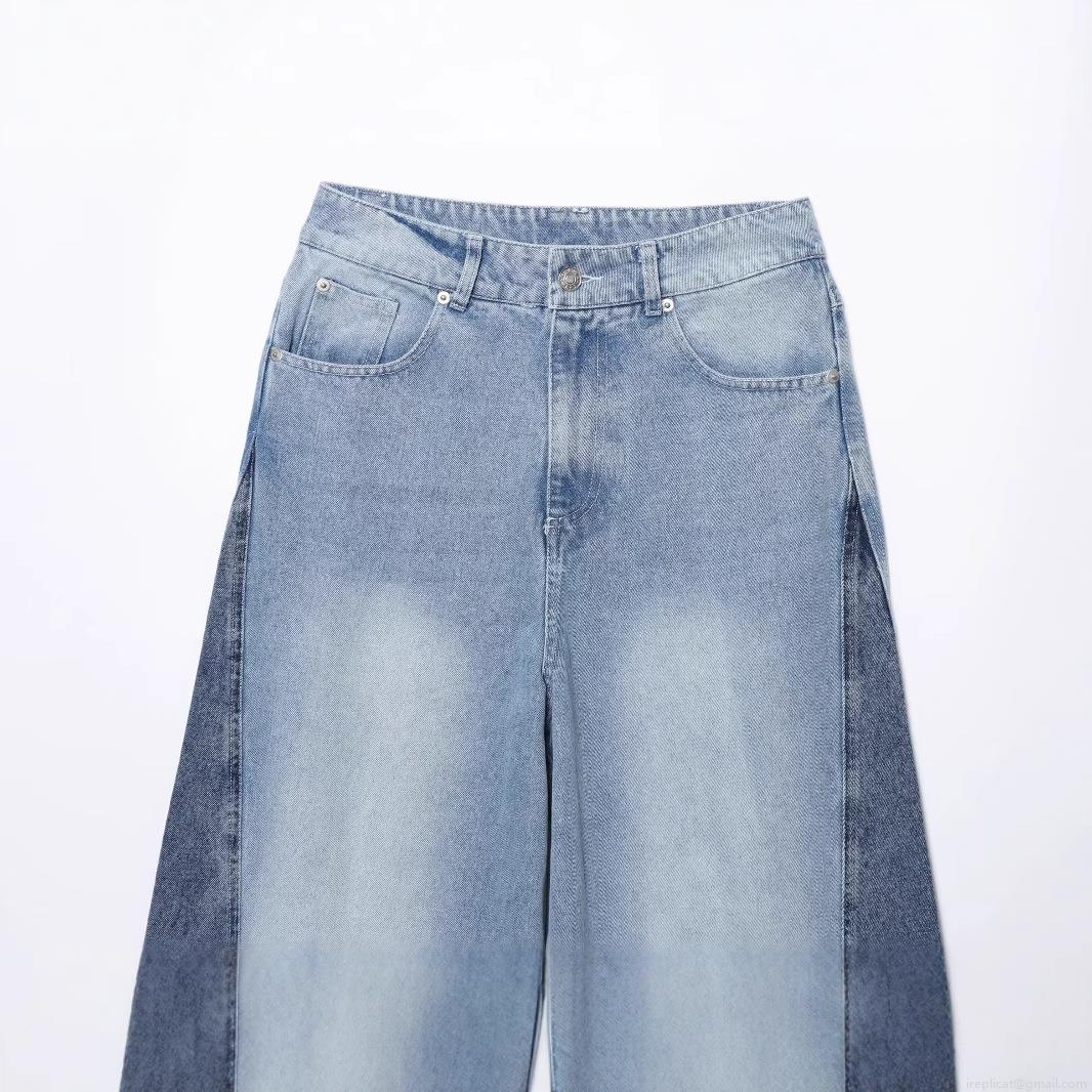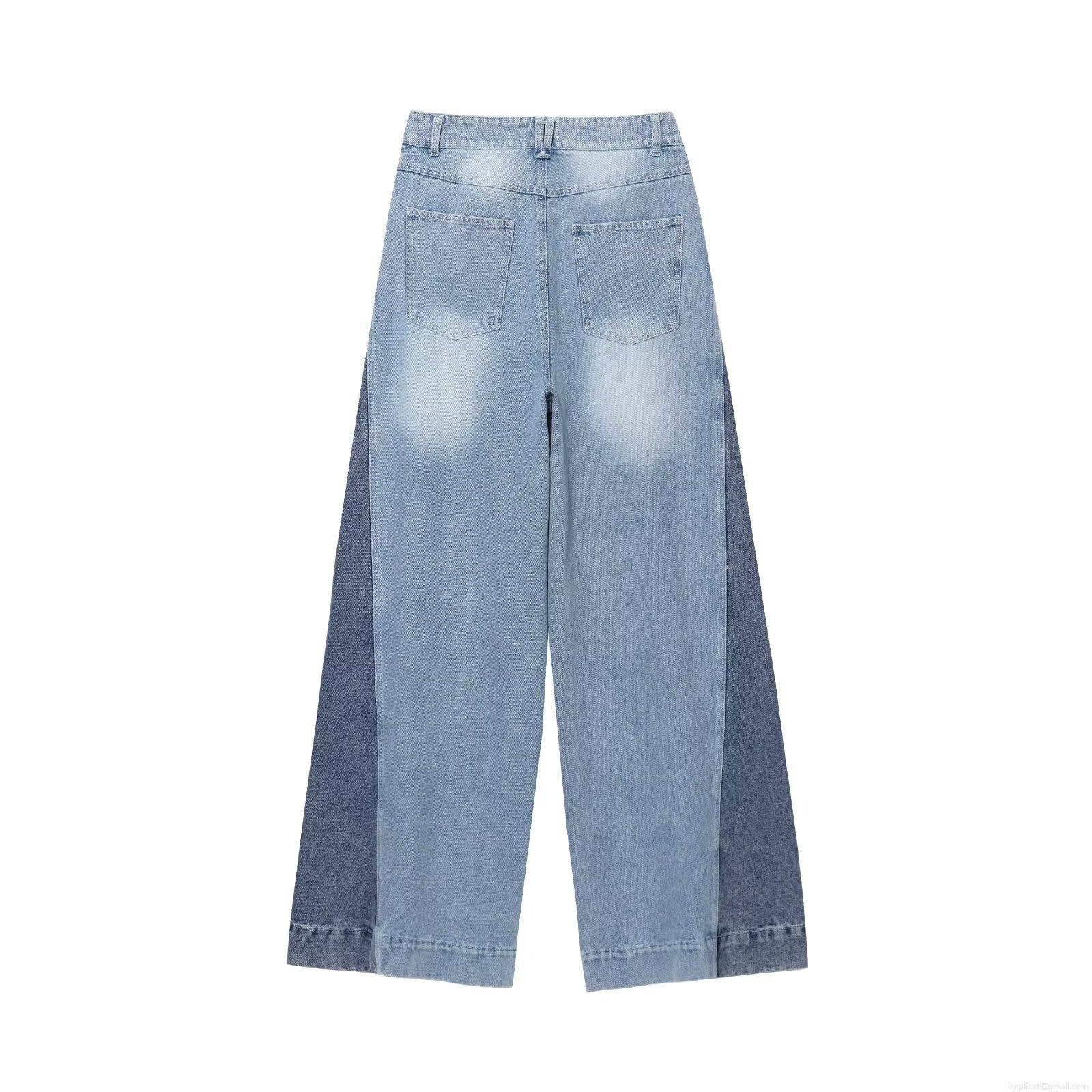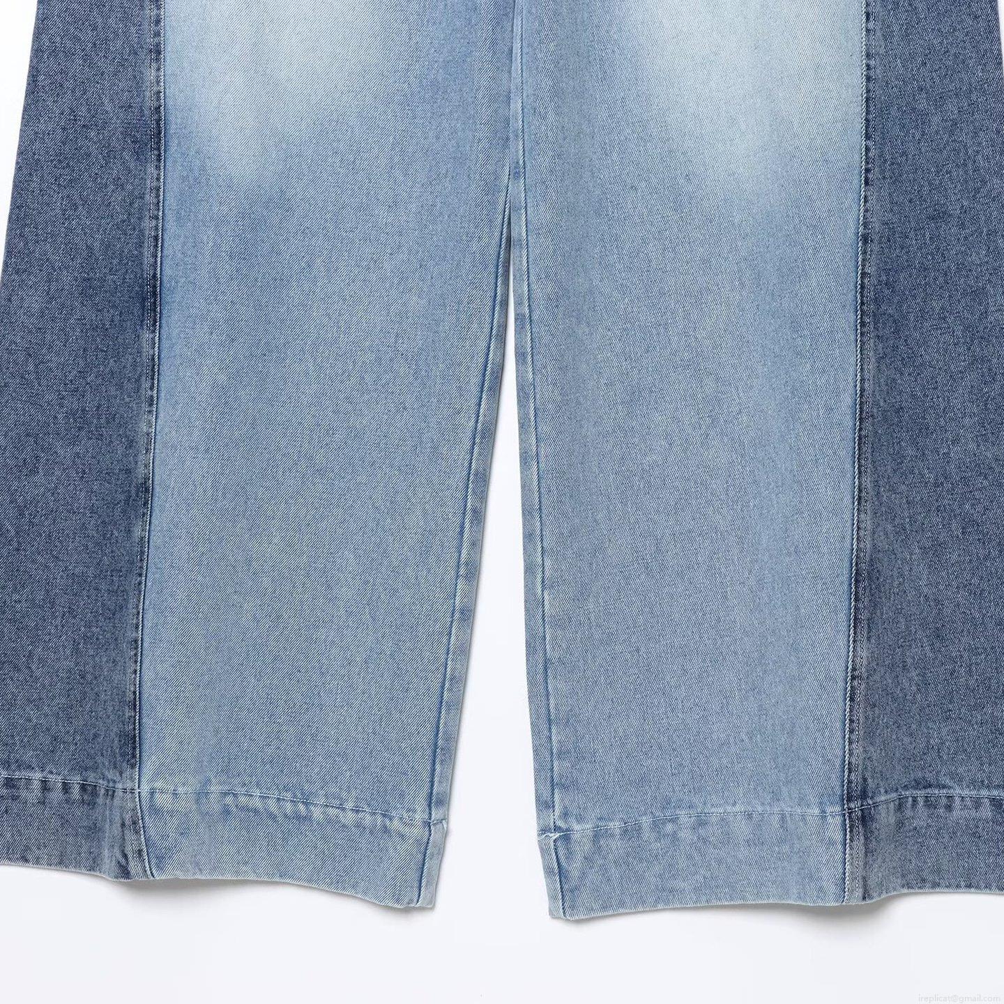 Women's Vintage Contrast Patchwork Wide Leg Denim Jeans High Waisted Cotton Straight Loose Trousers For Streetwear Casual Daily Lady Fashion