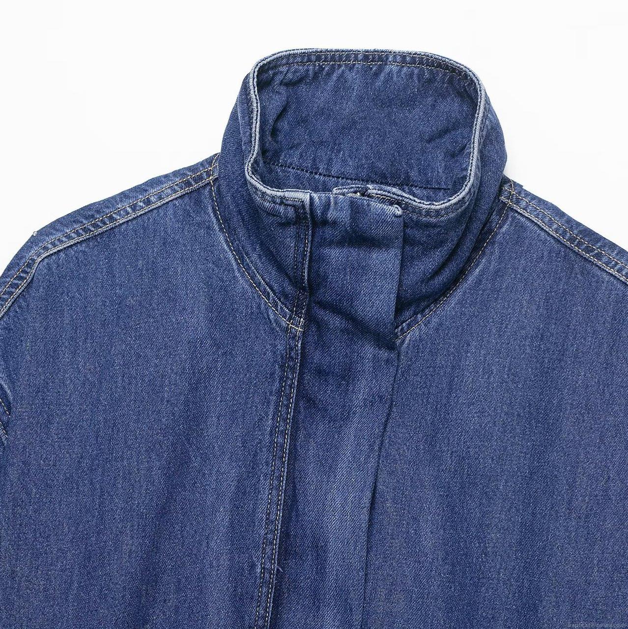 Women's Vintage Denim Jacket Loose Short Stand Collar Washed Blue Jean Coat For Autumn Casual Streetwear Outwear