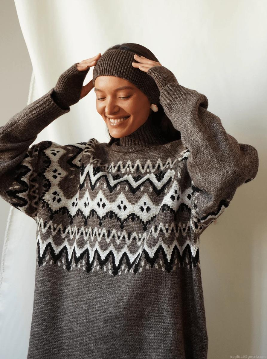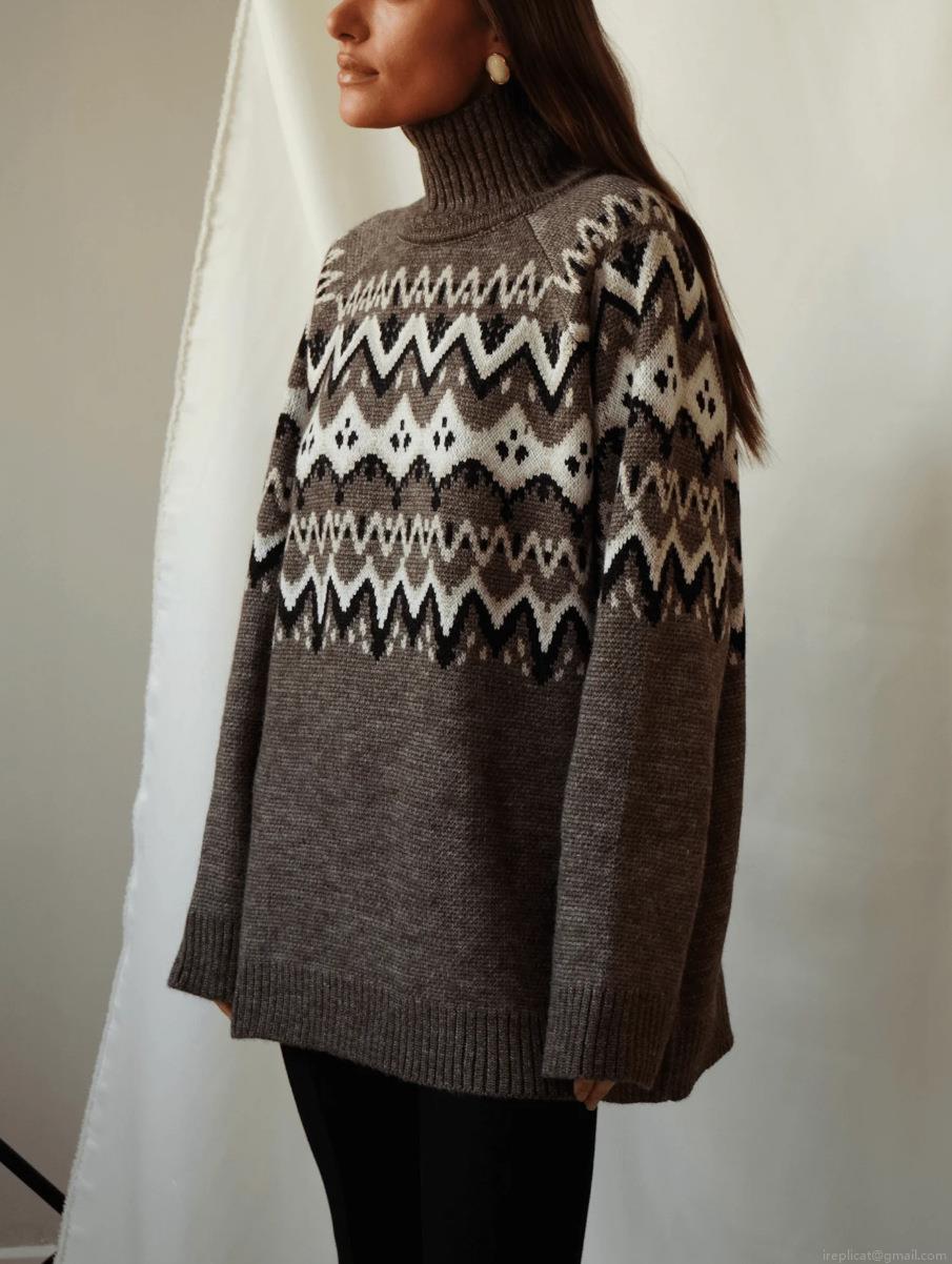 Women's Vintage Fair Isle High Neck Knit Sweater Loose Fit Cotton Polyester Blend Geometric Pattern Warm Pullover Top For Winter Autumn Casual Wear