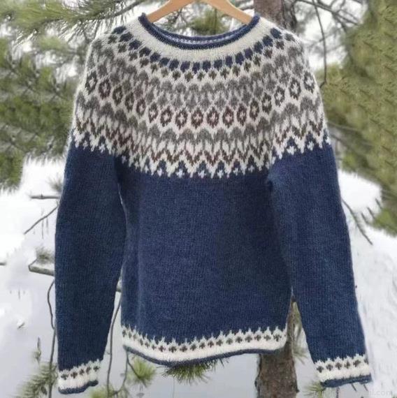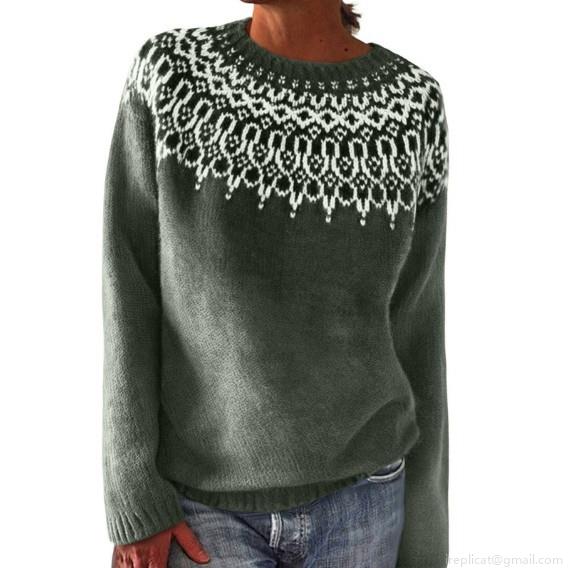 Women's Vintage Fair Isle Knit Sweater Nordic Color Block Crew Neck Long Sleeve Loose Pullover Acrylic Blend Warm Winter Christmas Jumper